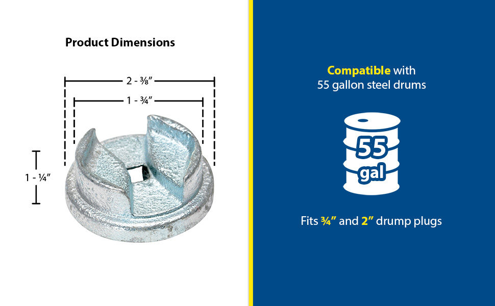 Open drum bungs easily! Designed to be used with standard socket wrenches (wrenches not included). Available in non-sparking bronze alloy or cast steel.