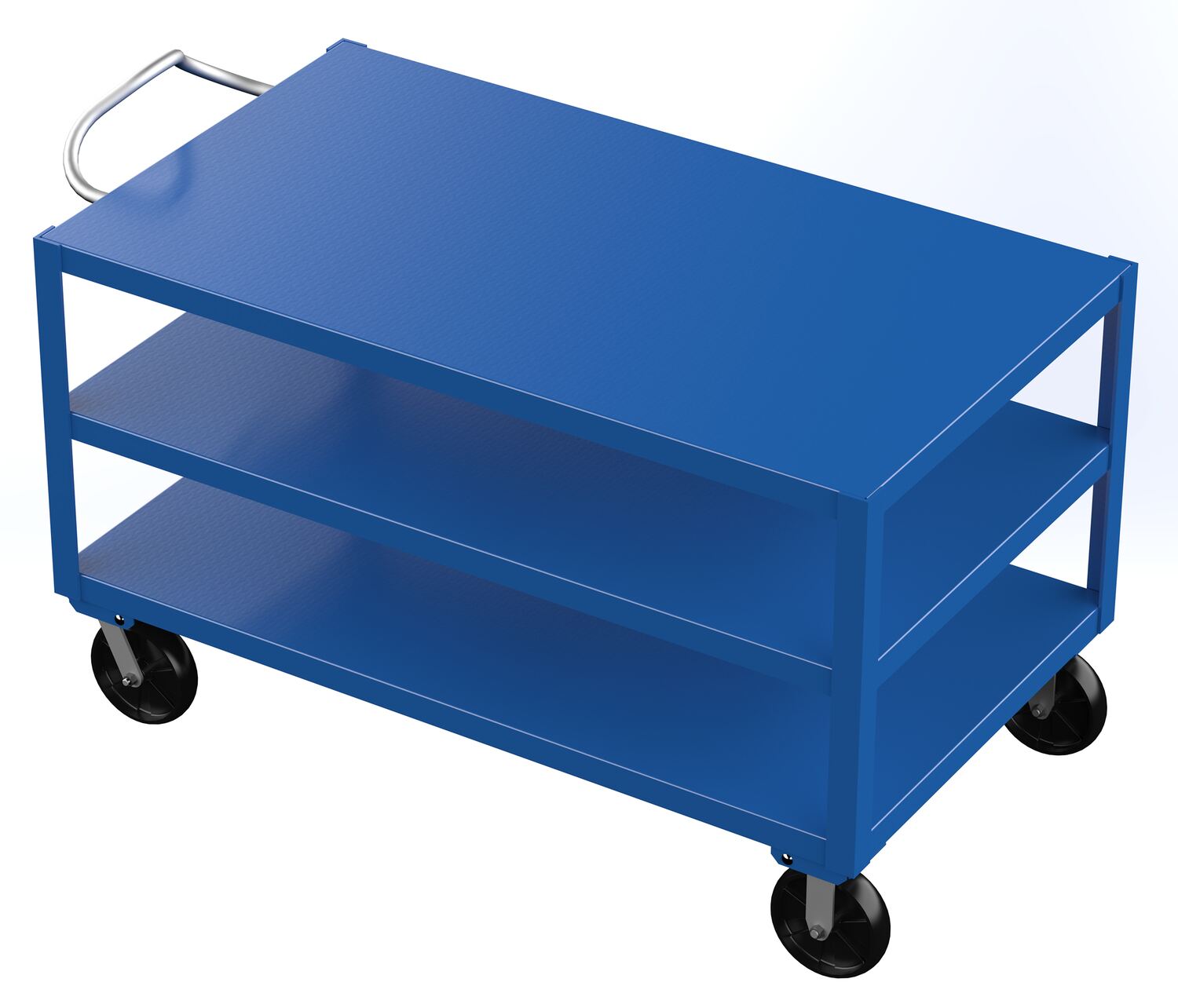 | Steel 24 In. x 60 In. Platform Heavy Duty 3 Shelf Ergo Handle Cart with GFN Casters 4000 Lb. Capacity Blue | Maximum Cart Capacity (lb.): 4,000 Maximum Shelf Capacity (lb.): 2,000 | 291 |