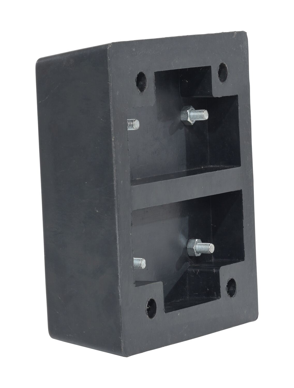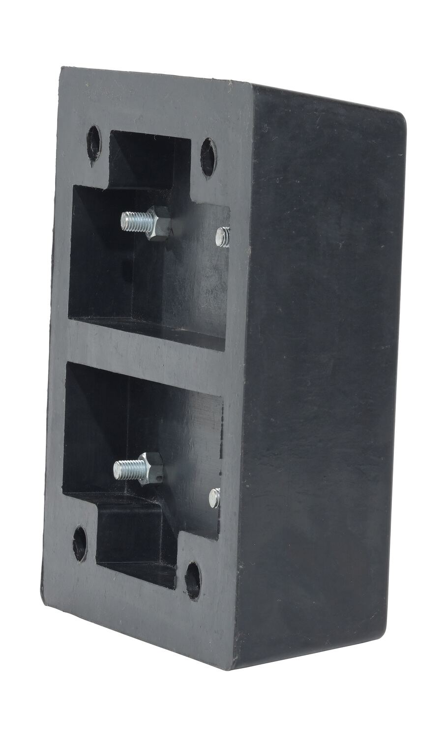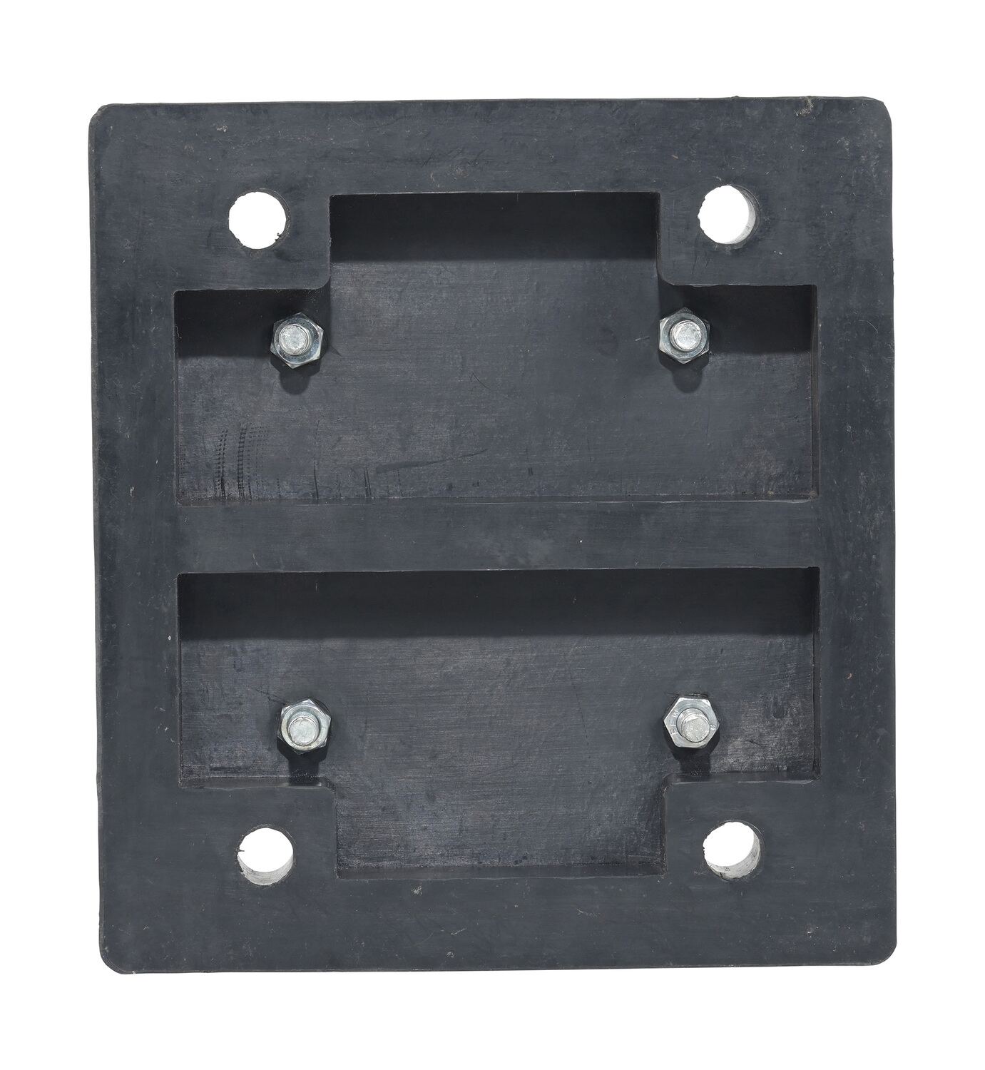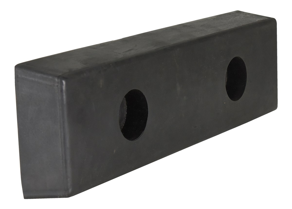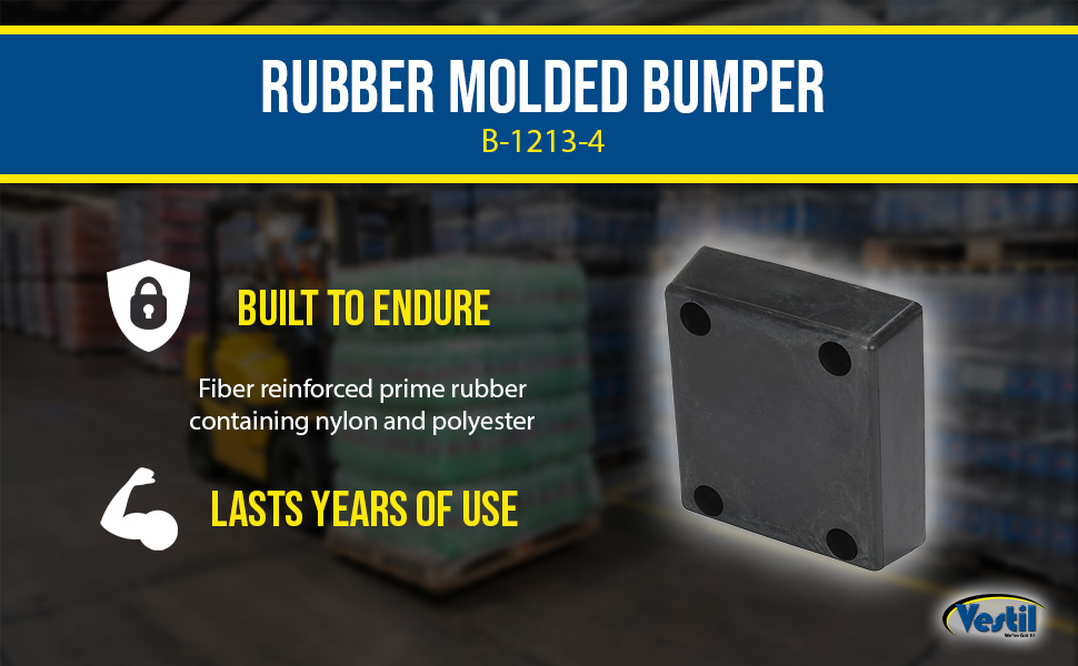 Manufactured from fiber reinforced prime rubber containing nylon and polyester. These molded bumpers are built to endure years of abusive pounding. All units have pre-drilled countersunk mounting holes for easy installation. Plastic face bumper, model B-1213-4PF, features two piece construction fully assembled and ready for installation. Installation hardware sold separately.