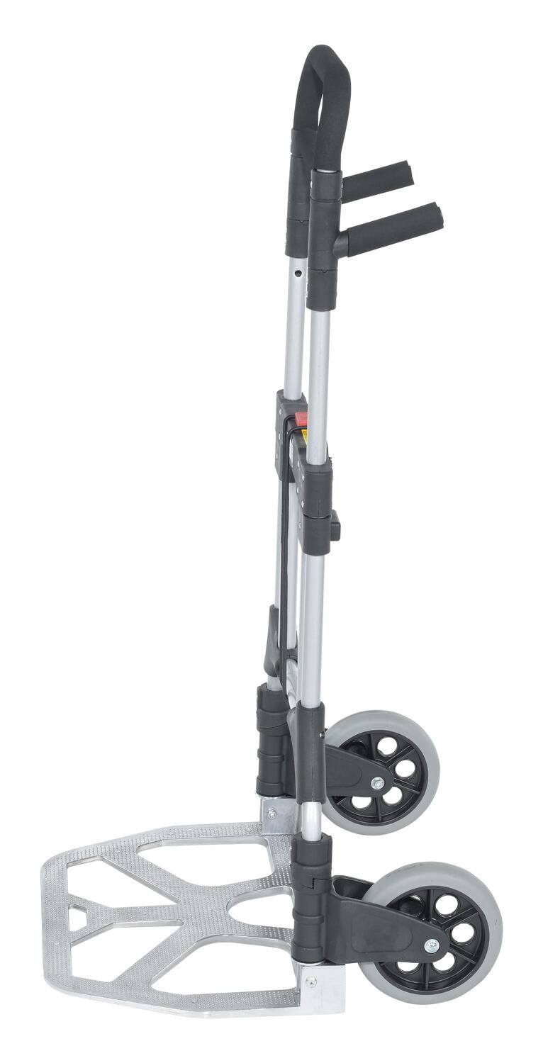 The Aluminum Fold-Up Hand Truck is designed for everyday, all purpose use. The handle and wheels fold up quickly and easily allowing you to store it in tight spaces such as trunks of cars, under tables, or in closets.