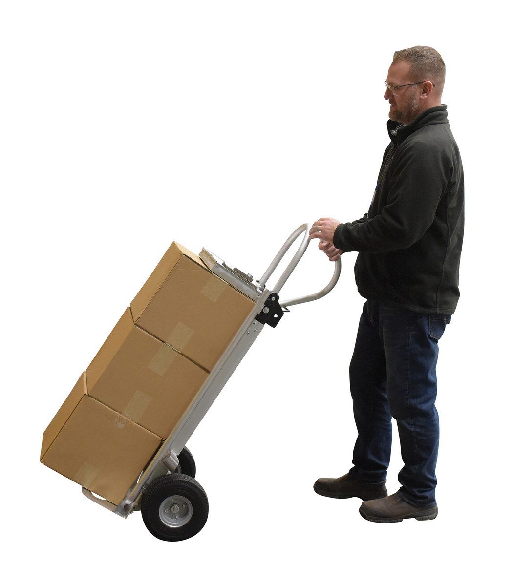 ALUM-P-TB ALUM-P-TBAluminum P Handle Hand Truck with Folding Down Platform Pneumatic Wheels 48 In. x 19-3/4 In. x 50-3/4 In. 500 Lb. Capacity SilverDolly Uniform Capacity (lb.): 500