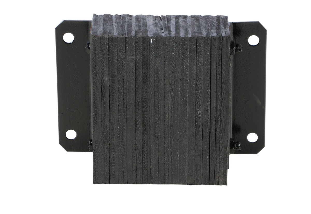 The laminated Dock Bumper provides durable, economical protection for loading docks and trailers. This unit is constructed of fabric reinforced rubber from recycled truck tires. The pads are laminated between painted structural angles and held together with steel tie rods. The width is bolt hole center to bolt hole center. Installation hardware sold separately.