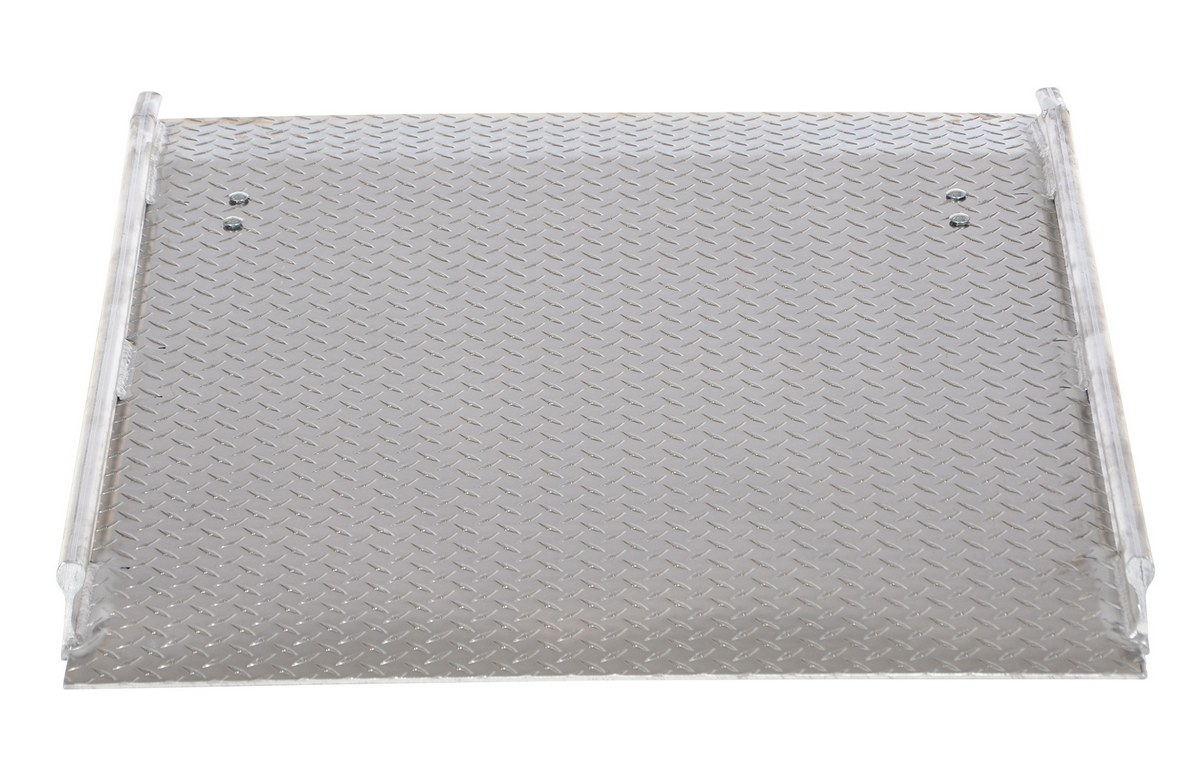 Aluminum Diamond Tread Hand Truck Dock Board with Curbs 47-7/8 In. x 37-1/4 In. x 10-3/16 In. 800 Lb. Capacity SilverThe Aluminum Hand Truck dock boards are lightweight and can be carried and positioned by one person. Provides a safe and convenient bridge between dock and truck. Welded aluminum diamond tread surface and beveled edges provide safe and smooth entry and exit. The bend is designed to keep ramp edges flush with the dock surface and the truck floor. The unit is equipped with bolt-on locking legs and full length aluminum curbs that provide hand holds and reduce chance of roll off. Designed for use with two wheel hand trucks.