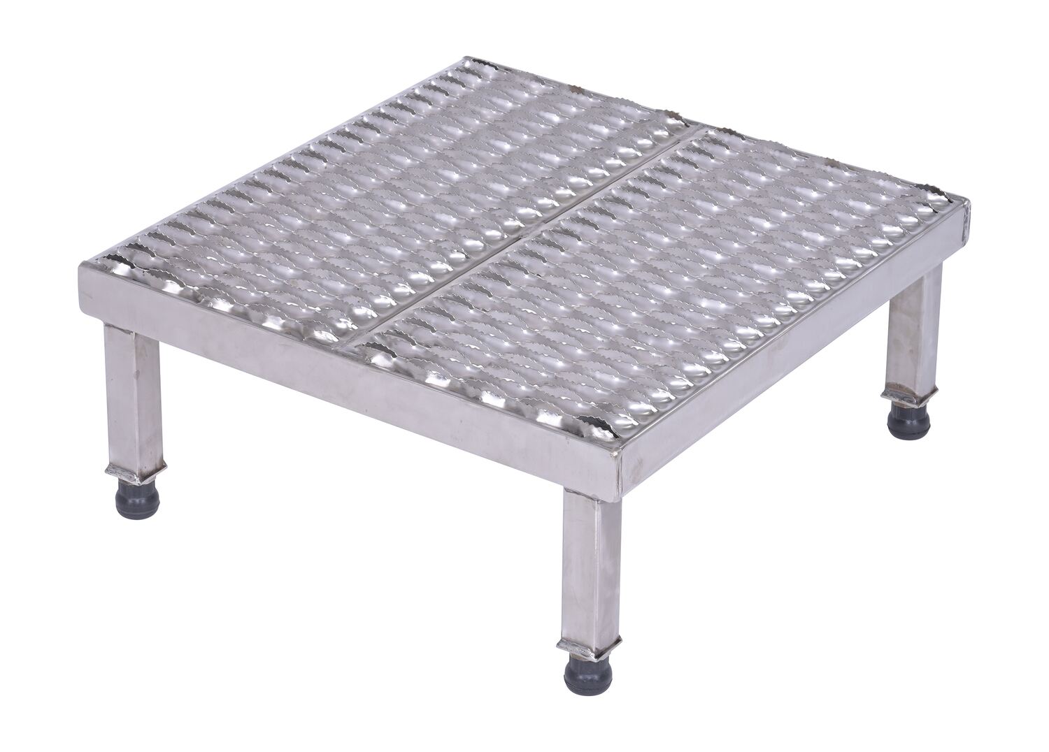 Stainless Steel Adjustable Work-Mate Stand 23-1/2 In. x 24 In. x 10-1/2 In. 500 Lb. Capacity SilverThe adjustable work-mate stand minimizes fatigue by elevating workers to heights that are comfortable and ergonomically correct. Especially useful when multiple shift employees operate the same piece of machinery. The height of each leg can be adjusted individually to ensure proper working height.