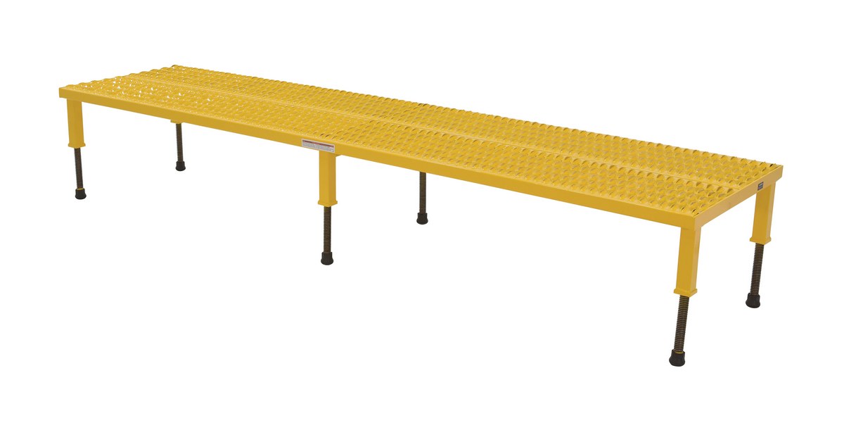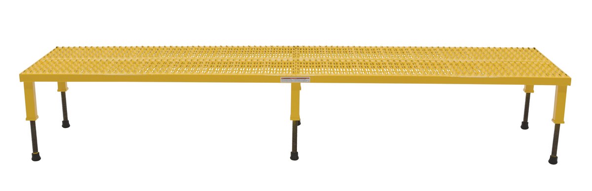 Steel Adjustable Work-Mate Stand 97 In. x 23-1/2 In. x 10-1/2 In. 500 Lb. Capacity YellowThe adjustable work-mate stand minimizes fatigue by elevating workers to heights that are comfortable and ergonomically correct. Especially useful when multiple shift employees operate the same piece of machinery. The height of each leg can be adjusted individually to ensure proper working height.
