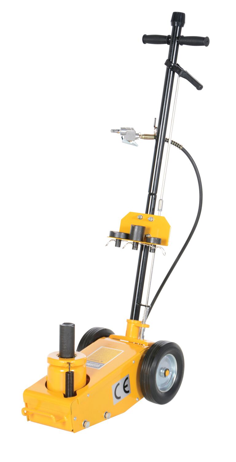 Steel Air Powered Fork Truck Jack 8-1/2 In. - 18-1/4 In. Lift Height 44,000 Lb. Capacity YellowThe air powered Fork Truck jack has an air-assist motor that quickly raises saddle to lift point and then lifts load to desired height. The air power allows for quick and easy operation. Unit uses standard coupler hook-up to a shop air compressor with air regulator control lever handle. Pressure relief valve is located on top of handle for metered control and load height adjustment.