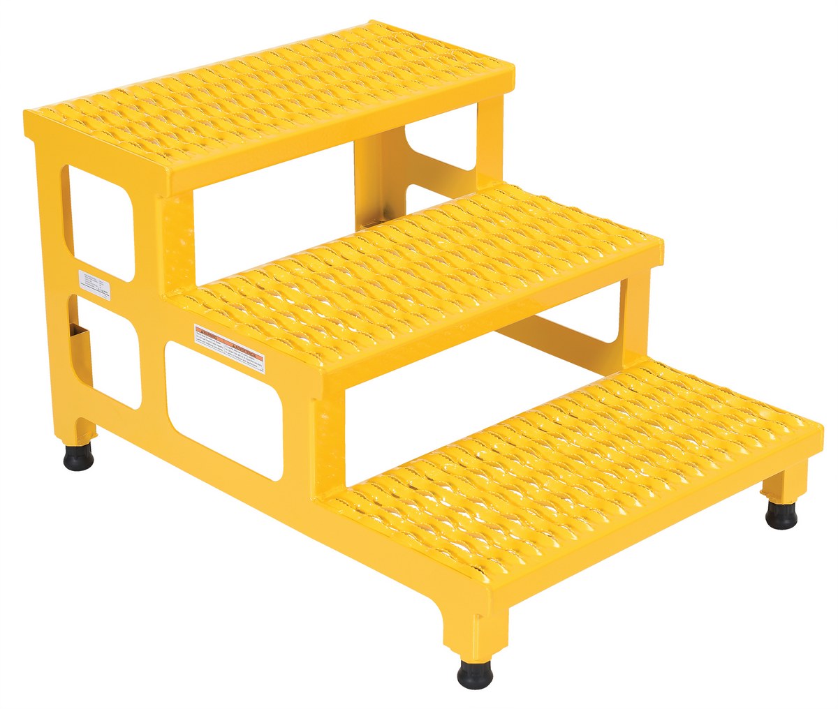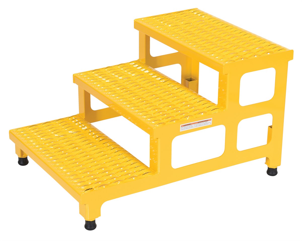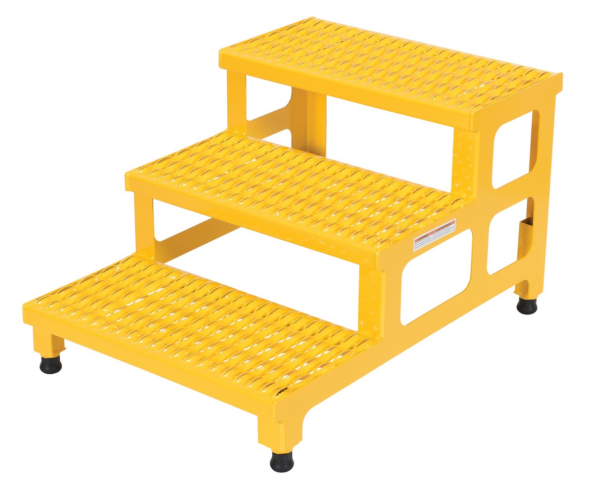 Steel Adjustable Step Mate Stand 3 Step 33-7/8 In. x 23-13/16 In. x 22-1/4 In. 500 Lb. Capacity YellowThe adjustable step-mate stand can be used as either a comfortable worker platform or a semi-permanent step. The serrated surface ensures safe footing. The legs adjust individually by screwing them into or out of the leg base.