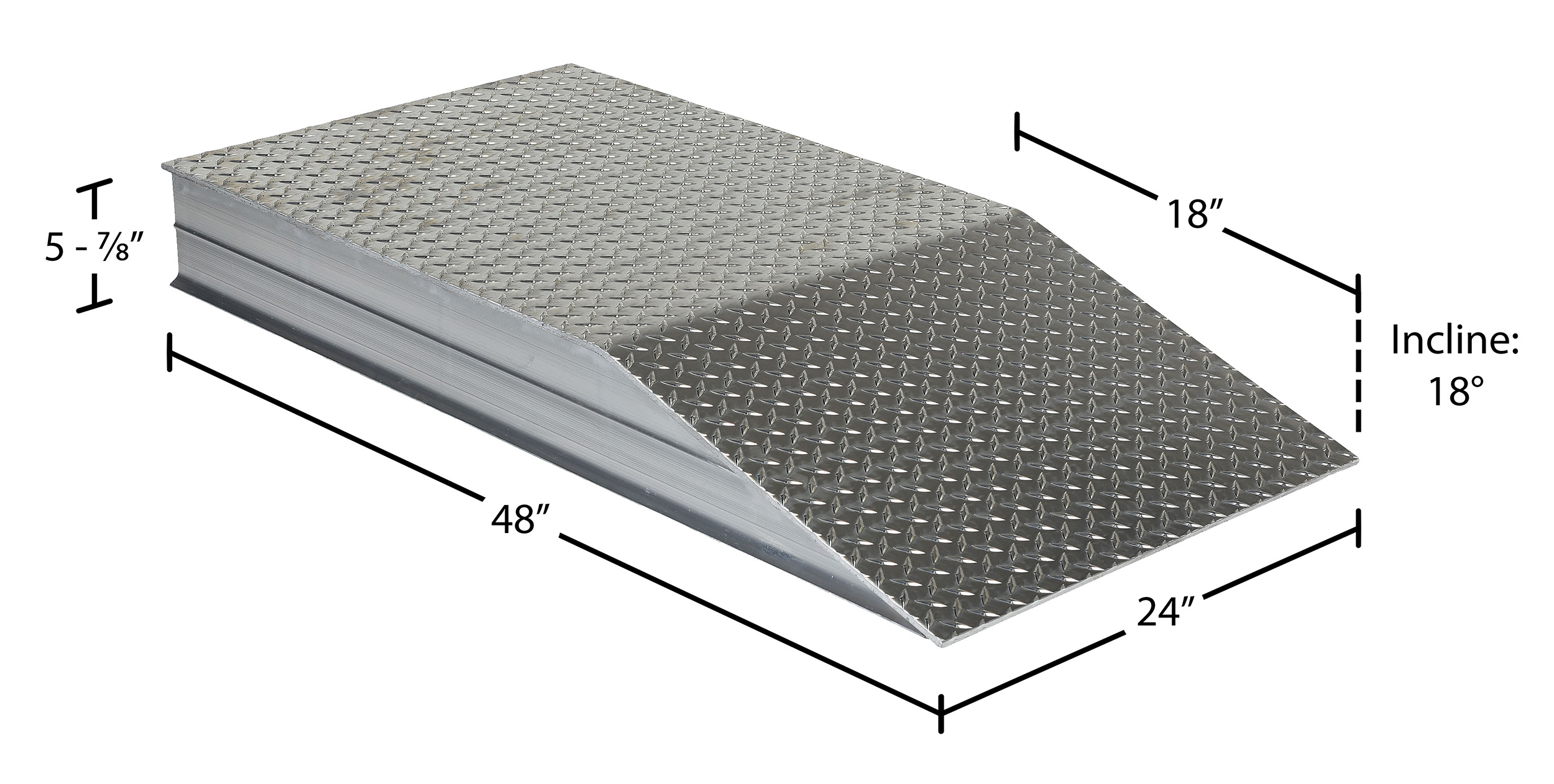 Aluminum Heavy Duty Wheel Riser 48 In. x 24 In. x 5-7/8 In. 30000 Lb. Capacity SilverElevate semi-trailers to loading docks for maximum serviceability during loading and unloading operations. Manufactured from heavy-duty aluminum tread plate for positive traction. All welded aluminum construction. 30,000 lbs. uniform capacity per pair (1/4" thick material). Wheel risers are designed to raise the trailer for secure loading and unloading.