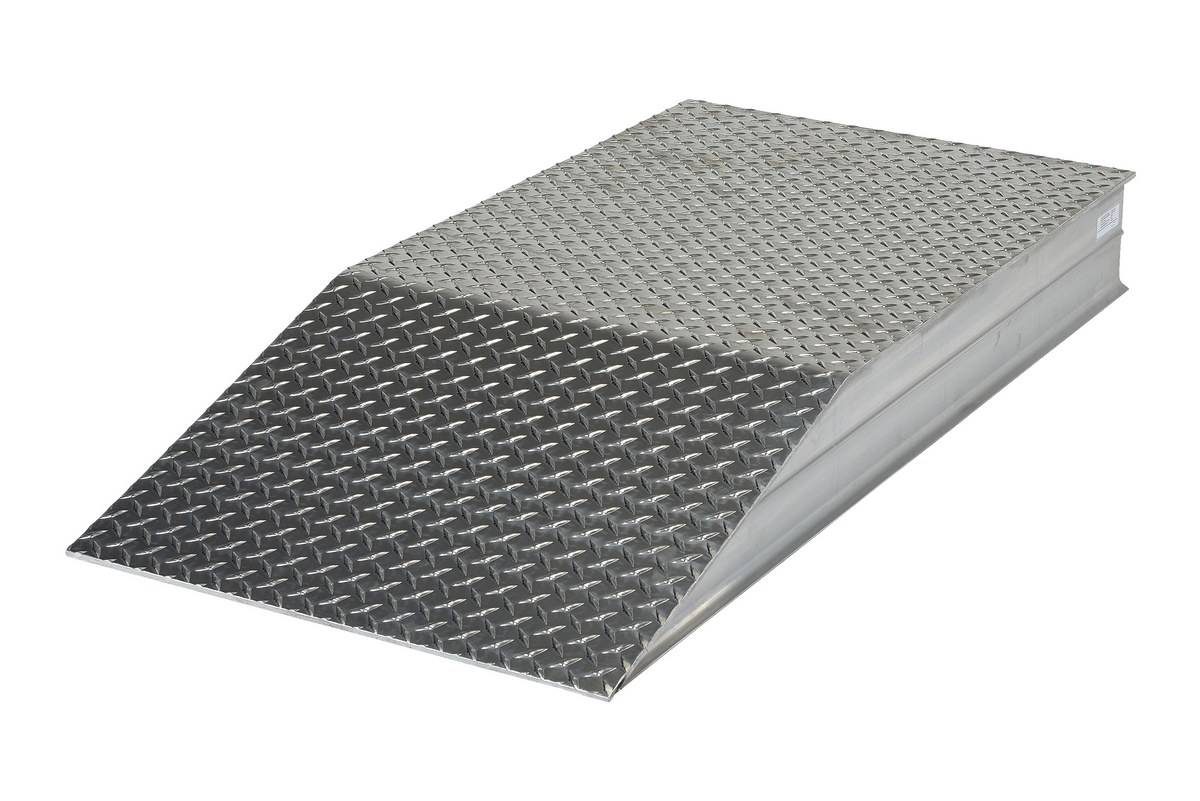 Elevate semi-trailers to loading docks for maximum serviceability during loading and unloading operations. Manufactured from heavy-duty aluminum tread plate for positive traction. All welded aluminum construction. 30,000 lbs. uniform capacity per pair (1/4" thick material). Wheel risers are designed to raise the trailer for secure loading and unloading.