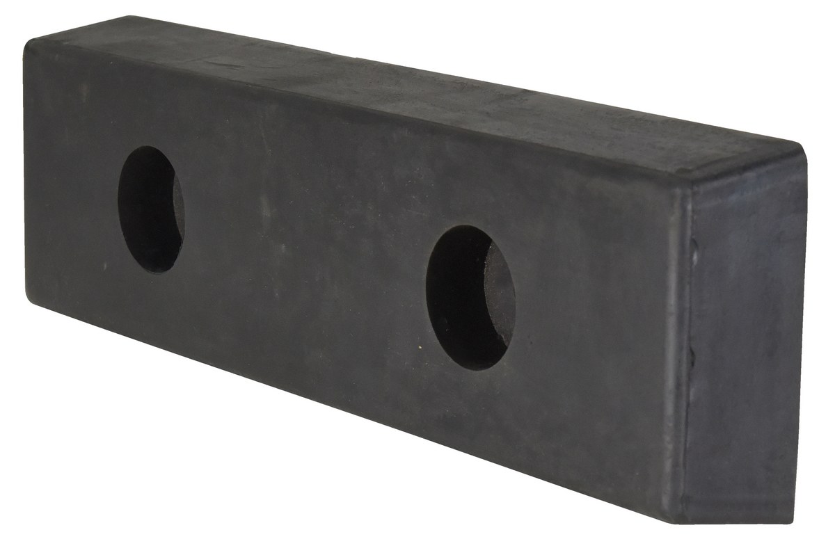 Rubber Rectangle Molded Bumper 16-1/8 In. x 4-29/32 In. x 2-1/8 In. BlackThe specialty molded Dock Bumper is manufactured from fiber reinforced prime rubber containing nylon and polyester. This molded bumper is built to endure years of abusive pounding and has pre-drilled countersunk mounting holes for easy installation. Bumper offers a plastic face bumper that features a two (2) piece construction fully assembled and ready for installation. The installation hardware is available separately.
