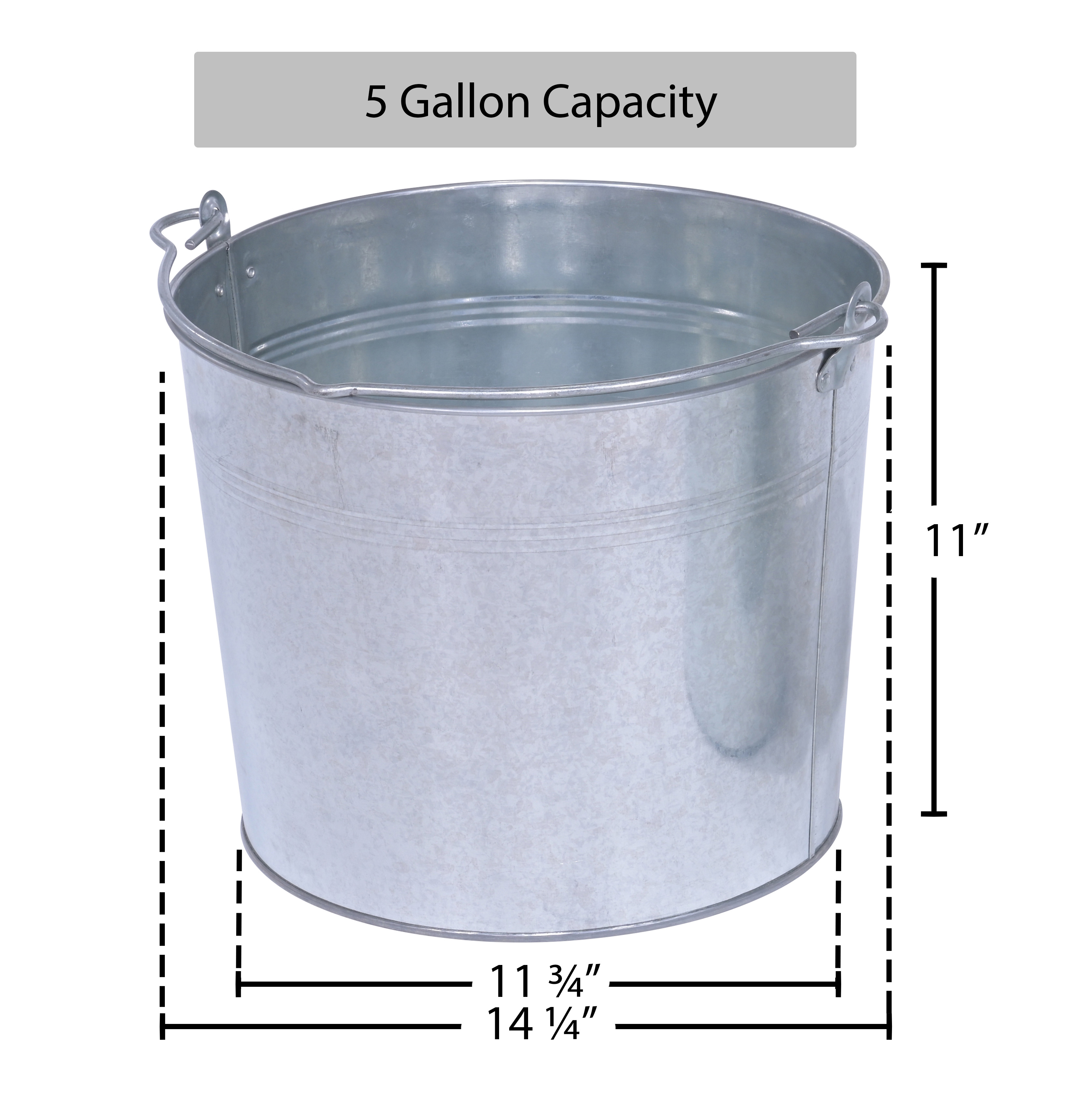 Galvanized Steel Bucket 5 Gallon CapacityThis Galvanized bucket is for use in industrial and commercial applications where durability is required. Buckets are nestable and come standard with a carrying handle/bail for easy transport. Galvanized steel construction.