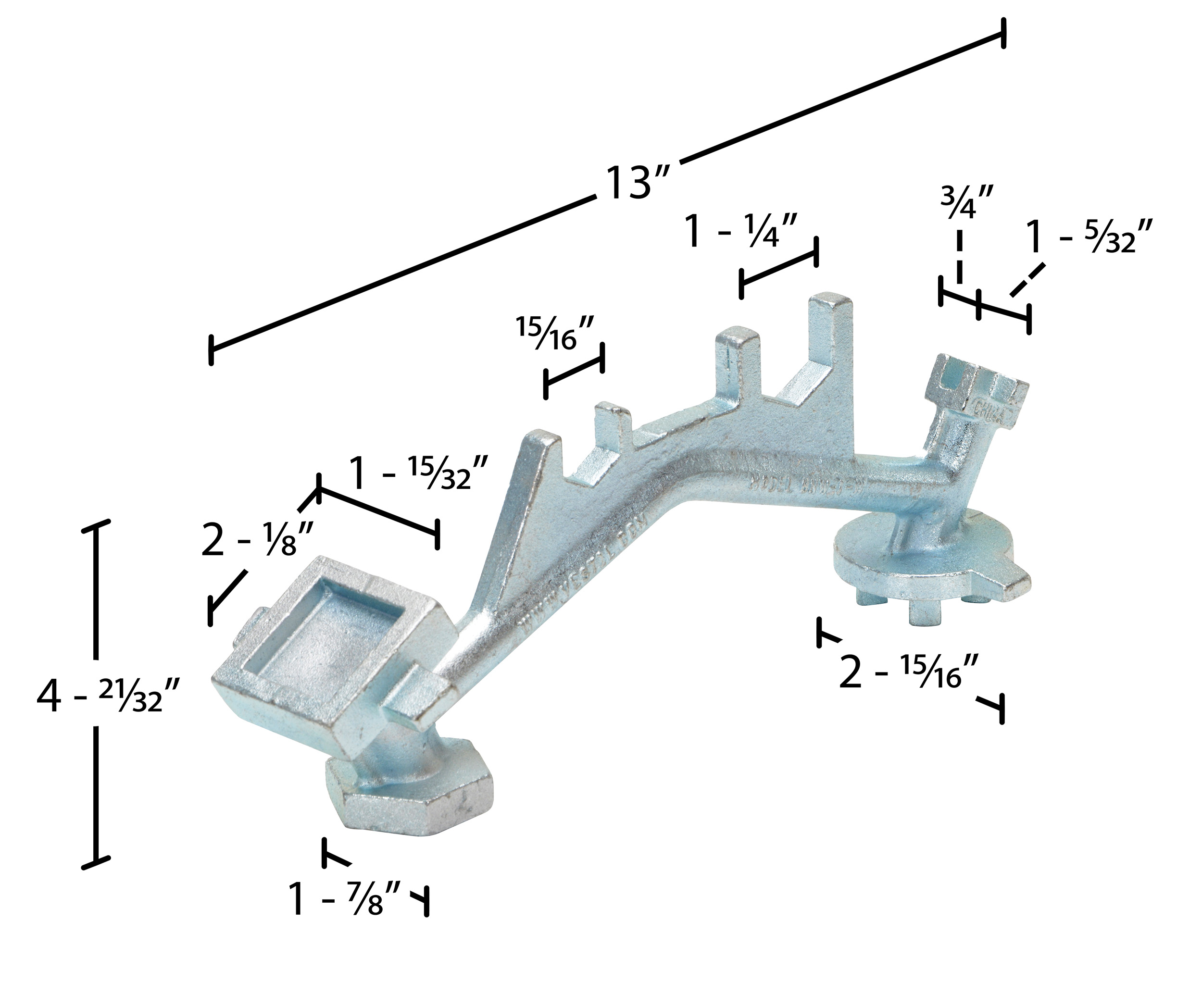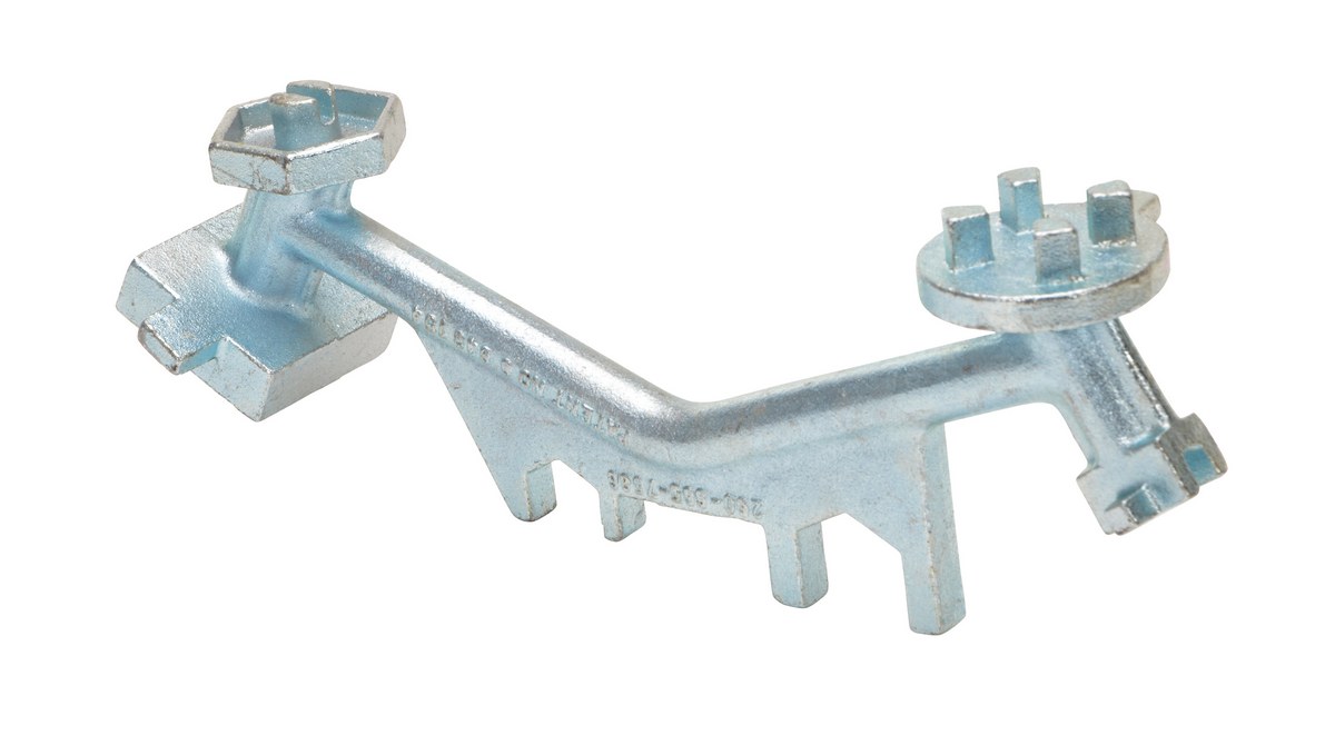 Polished Zinc Cast Steel Angled Hand Drum Bung Nut WrenchThis multipurpose, single ended, polished zinc cast steel drum Bung nut wrench not only opens and closes drum bungs or plugs, they also work as a bung wrench, ring wrench and faucet wrench all in one! These durable wrenches will not bend, break or chip. Eliminate the need for extra tools with these multi functional drum wrenches! Patent pending.