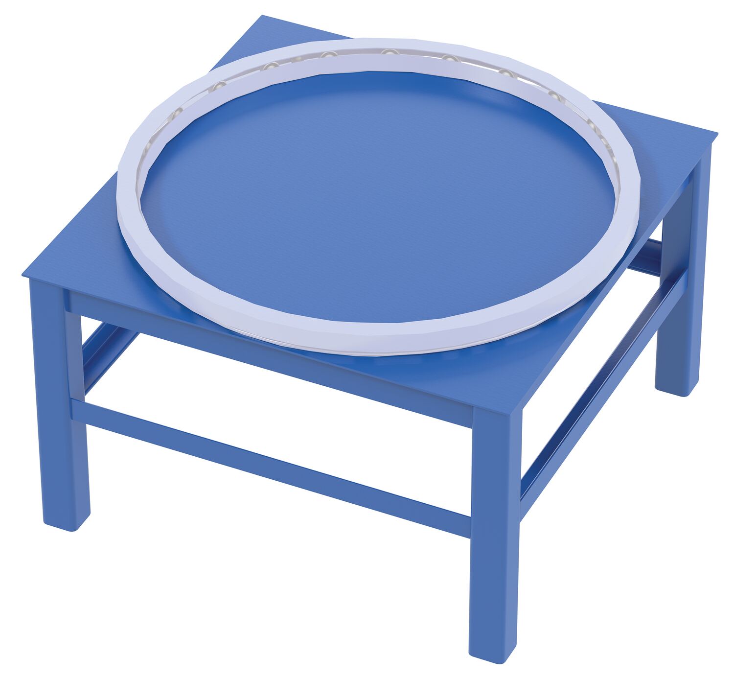 Factory Installed Steel Elevated Bases for Carousels 40 In. x 24 In. 6000 Lb. Capacity BlueOptional elevated base for the manual carousel helps maintain products at an elevated height. A square design with four legs,one in each corner, for stability.