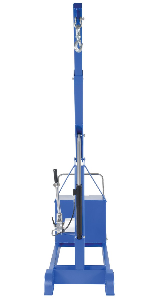Steel Counter Balance Floor Crane 1000 Lb. Capacity BlueThis Counter Balanced floor crane has an adjustable boom to allow for maximum adjustment and versatility to lift a variety of loads. Boom is raised with a manual hydraulic hand pump. Boom also telescopes out for greater reach. The counterbalance design eliminates the need for front legs. This makes the unit easier to maneuver and allows the crane to reach tight, hard to reach areas. Counterbalance included. Welded steel construction.