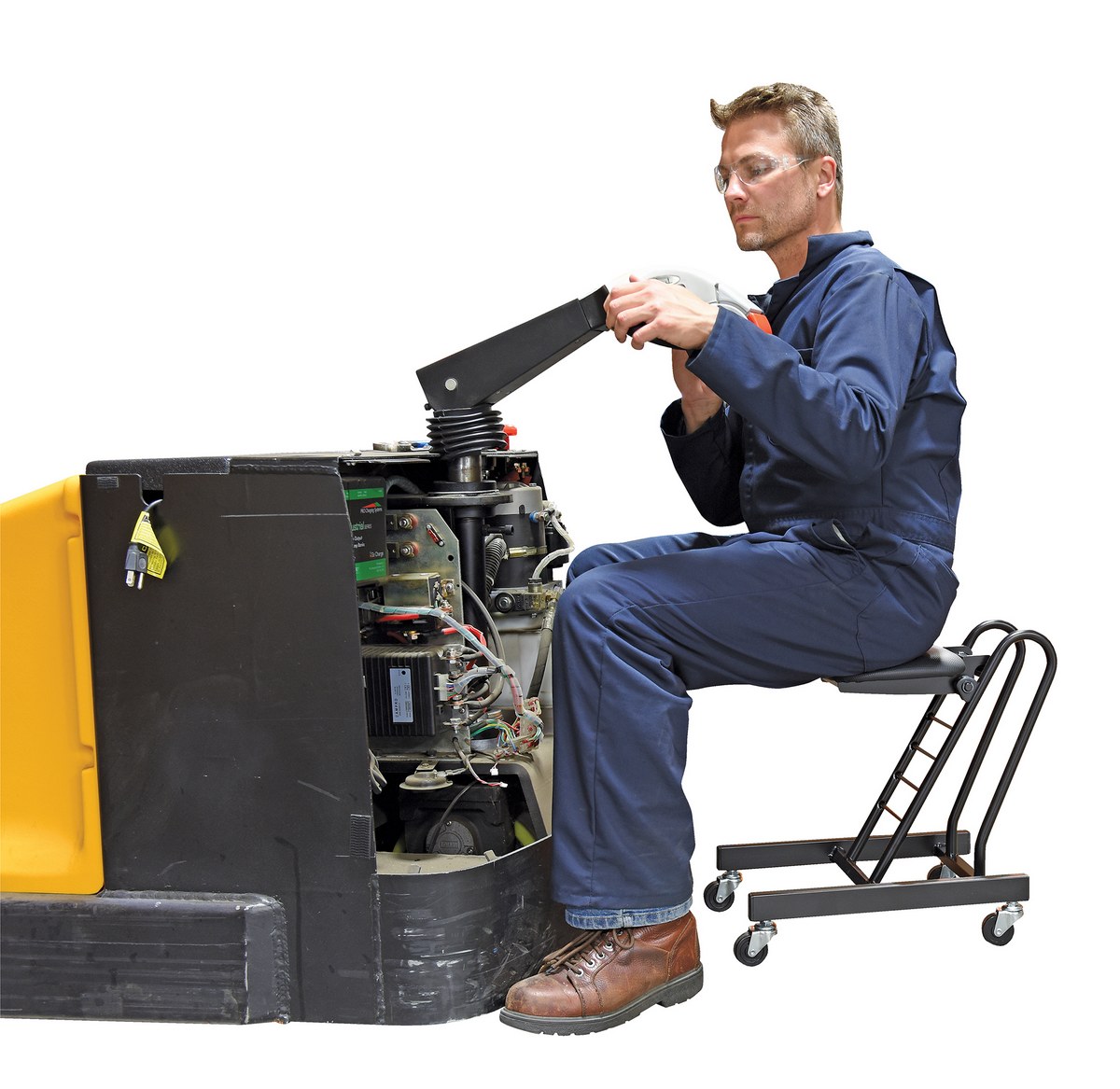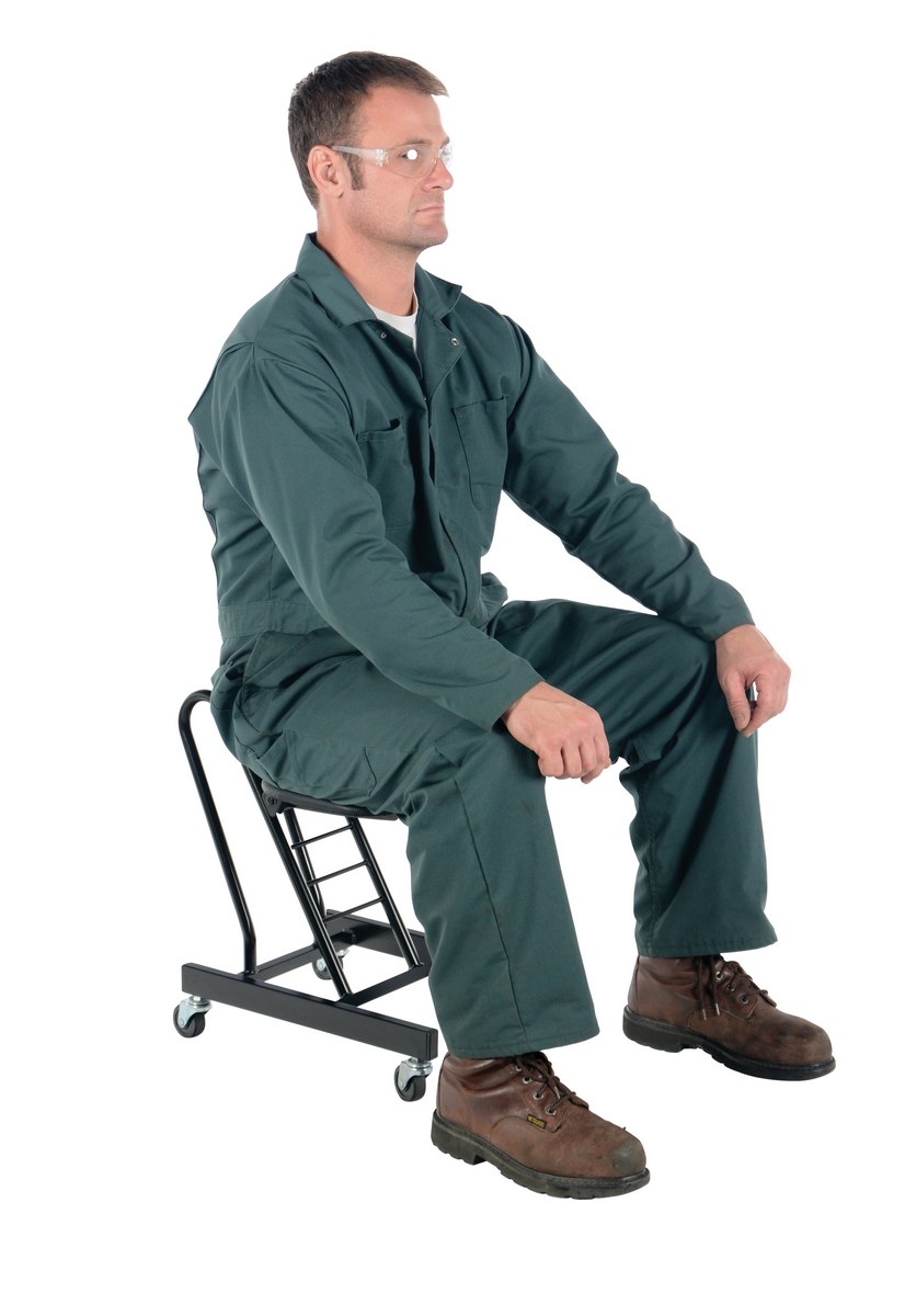Steel Height Ergonomic Worker Chairs 9 In. to 18 In. 220 Lb. Capacity BlackThe Ergonomic worker seat allows individuals to go from a low crouch position to a standing position. The seat height can be adjusted by moving the seat and hooking in to the horizontal bars located on the chair frame. Portable on swivel casters. The unit has four rubber "shocks" under the seat base that allow the seat to tilt forward, left, and right so it can accommodate your body movements. The front tilted position of the seat helps the user maintain the natural posture position of the spine.