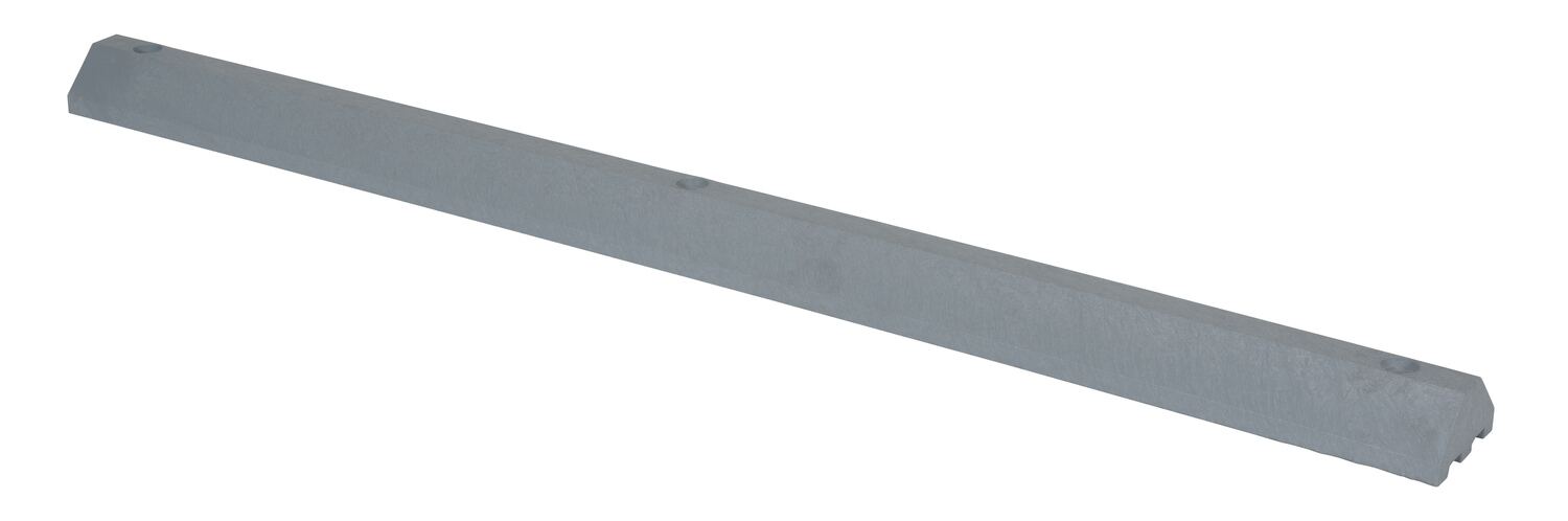 Recycled Plastic Car Stop 72 In. x 6 In. x 3-1/4 In. GrayThe car stops protect people and property from drivers in dangerous areas. Constructed of lightweight plastic. One person installation. Can be moved for seal coating, snow removal, change of location. Resists marring by oil, road salt, sunlight, and chemicals. Resists rotting, termite damage and corrosion. No costly painting or maintenance. Hardware kits sold separately.