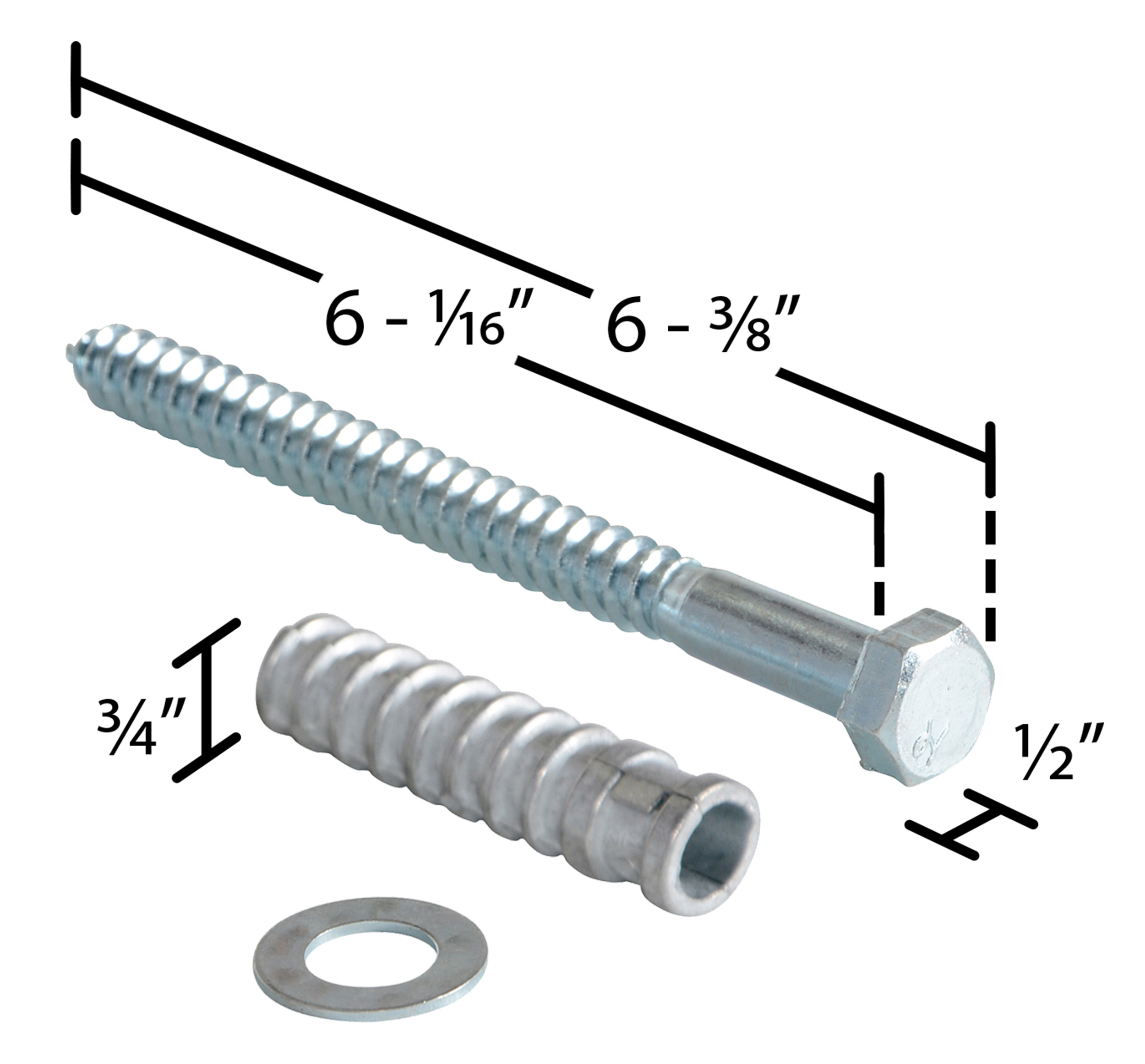 | Lag Bolts (in.): 1/2 x 6 | Washers (in.): 1/2 | Anchor Sleeves (in.): 1/2 |
