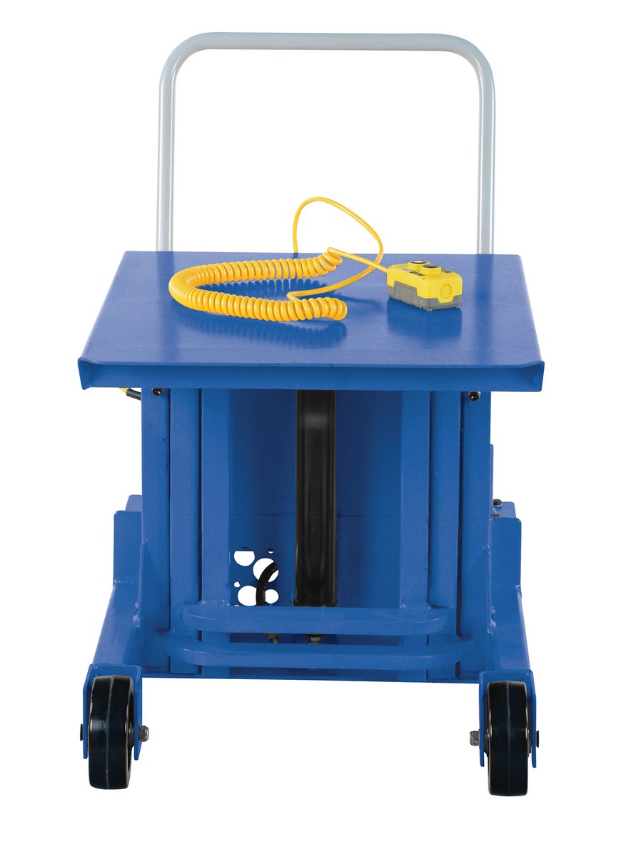 Steel DC Ergonomic Manual Die Table 24 In. x 30 In. Chrome Platform 2000 Lb. Capacity BlueDesigned to reduce back injuries and cumulative trauma disorders. Lifts heavy equipment to ergonomic working height. All welded steel construction will provide years of service and hard work. Small frame size allows unit to access hard-to-reach locations. Two (2) rigid and two (2) swivel with side brake casters standard.