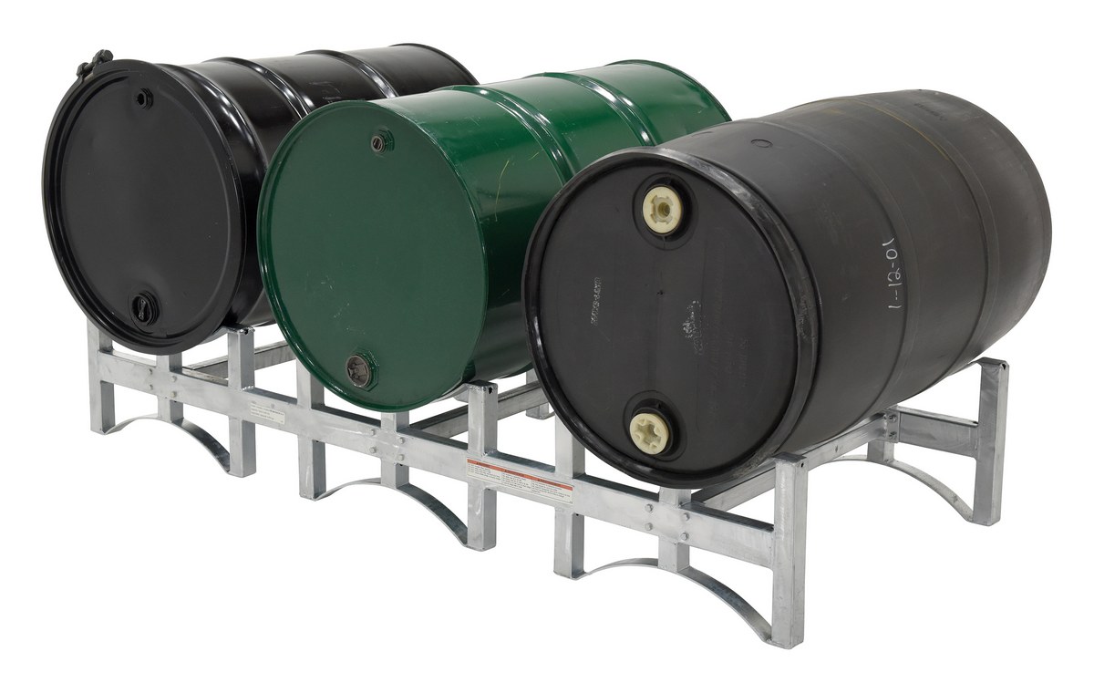 Galvanized Steel Stackable Drum Rack 3 Drum 55 Gallon 2400 Lb. Capacity GrayThis steel drum rack has four-way fork truck access. Not recommended for stacking more than four (4) racks high. All steel construction with formed steel cradles. Bolt together assembly with hardware included.