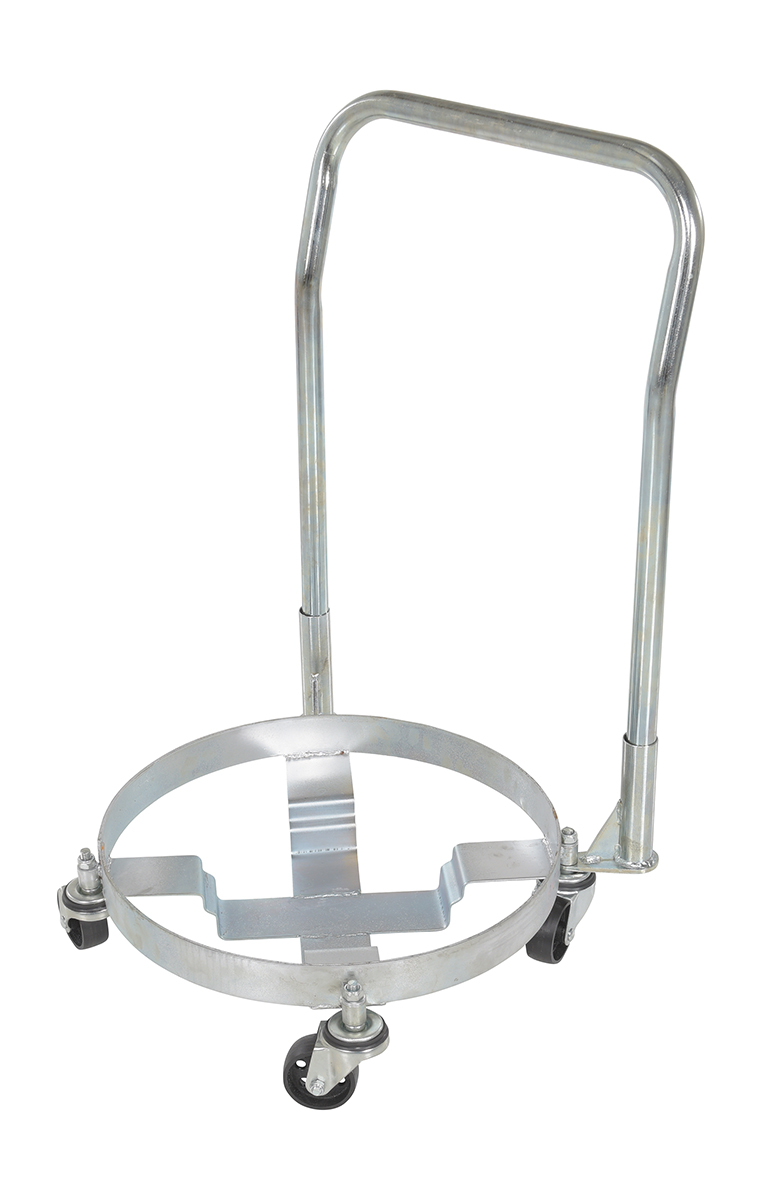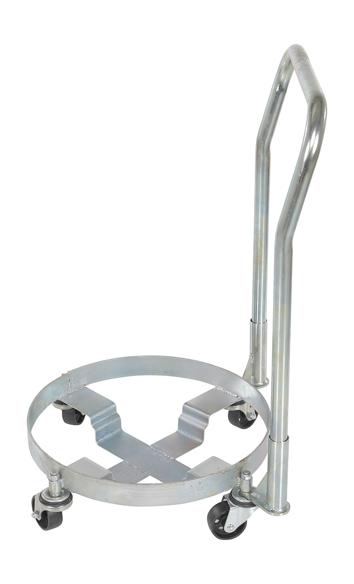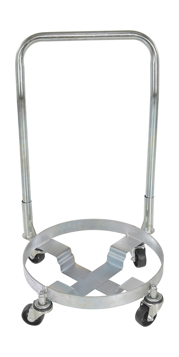 This multi-purpose drum dolly has a high polished bright zinc finish for corrosion resistance. Dolly comes with a handle that lets the user steer and move the unit to the desired location with ease. Casters allows the unit to roll smoothly across a variety of surfaces.