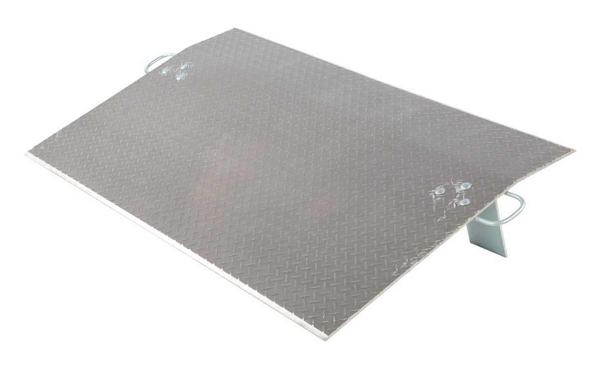 Aluminum Economizer Dock Plate Usable 60 In. x 36 In. 3/8 In. Plate Thickness 4100 Lb. CapacityThe aluminum economizer dock plate is an economical way to speed up truck loading and unloading. The unit spans the opening between dock and trailer to allow pallet or hand trucks along with traffic to safely move in and out of the trailer. The dock plate is constructed of high strength, non-skid aluminum alloy tread plate. The lightweight design with bolt on zinc plated legs and handles on each side makes portability easy. Locking legs for OSHA compliance. Not for use with fork trucks.
