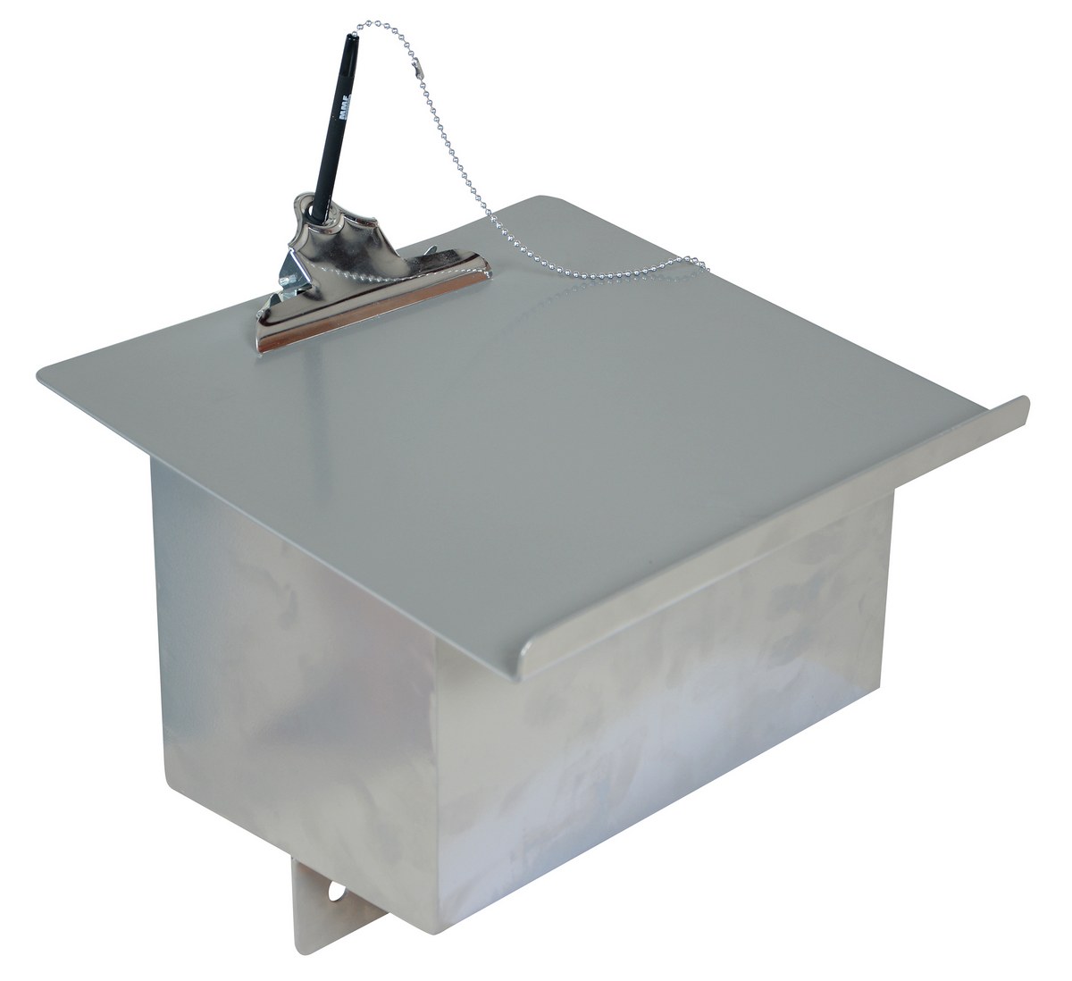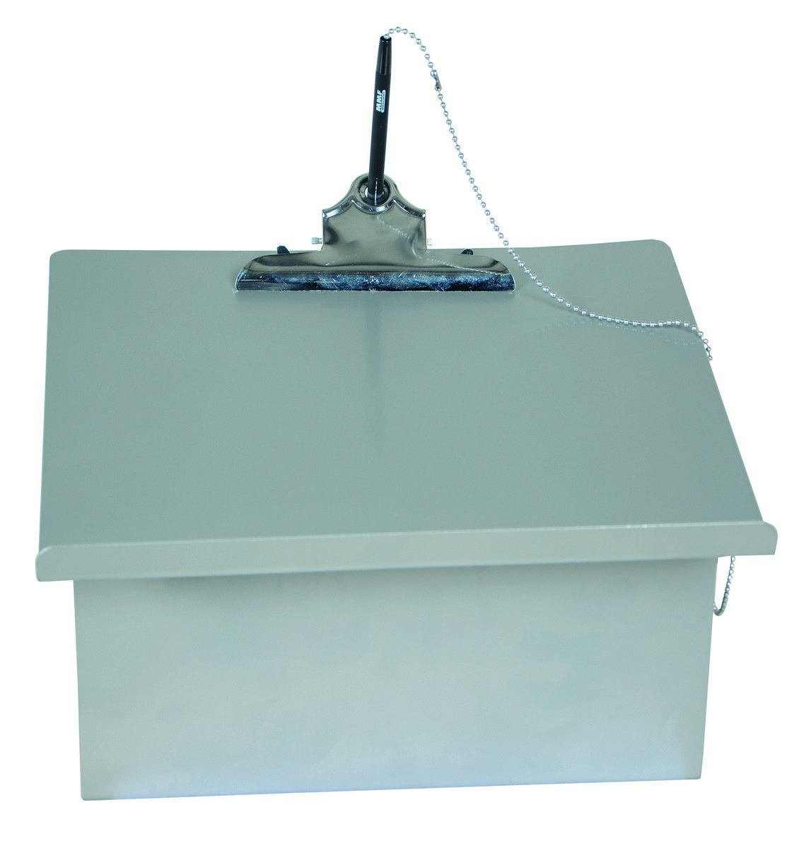 An optional writing table/storage box for the steel stock trucks. Includes security pen and clipboard style paper holder.