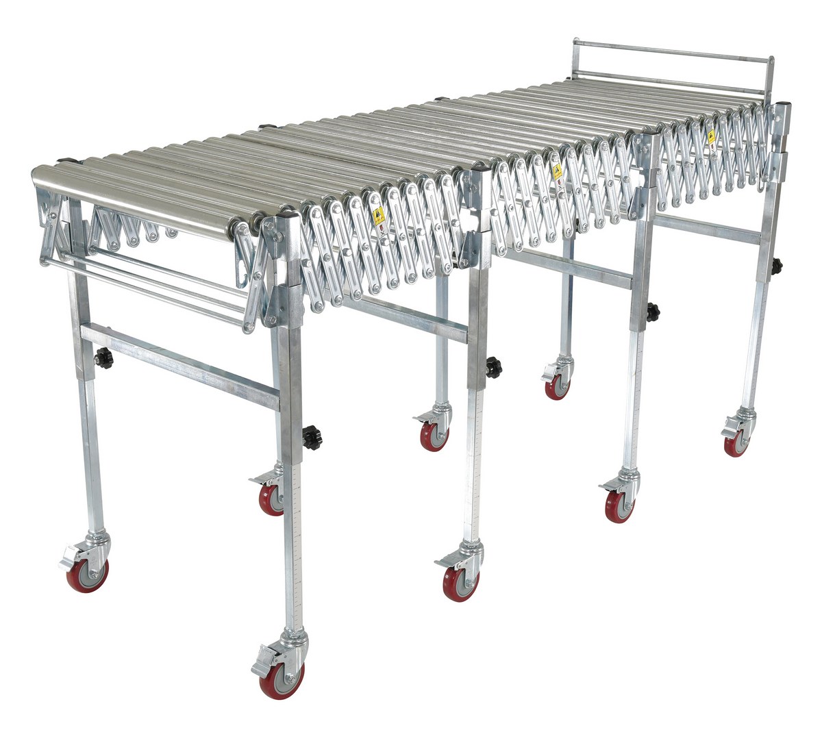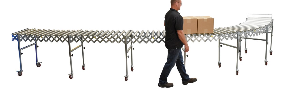 Steel Expandable Conveyor Roller 200 Lb. Capacity SilverExpandable roller conveyor is the perfect asset for packaging and distributing facilities. The conveyor provides the user an ergonomically friendly way to transfer goods while minimizing the bending and twisting during shipping and handling. A strong construction provides strength for transferring large awkward products. The conveyor can be expanded to reach greater distances between packaging points. Once finished it can be retracted to fit in a condensed area.