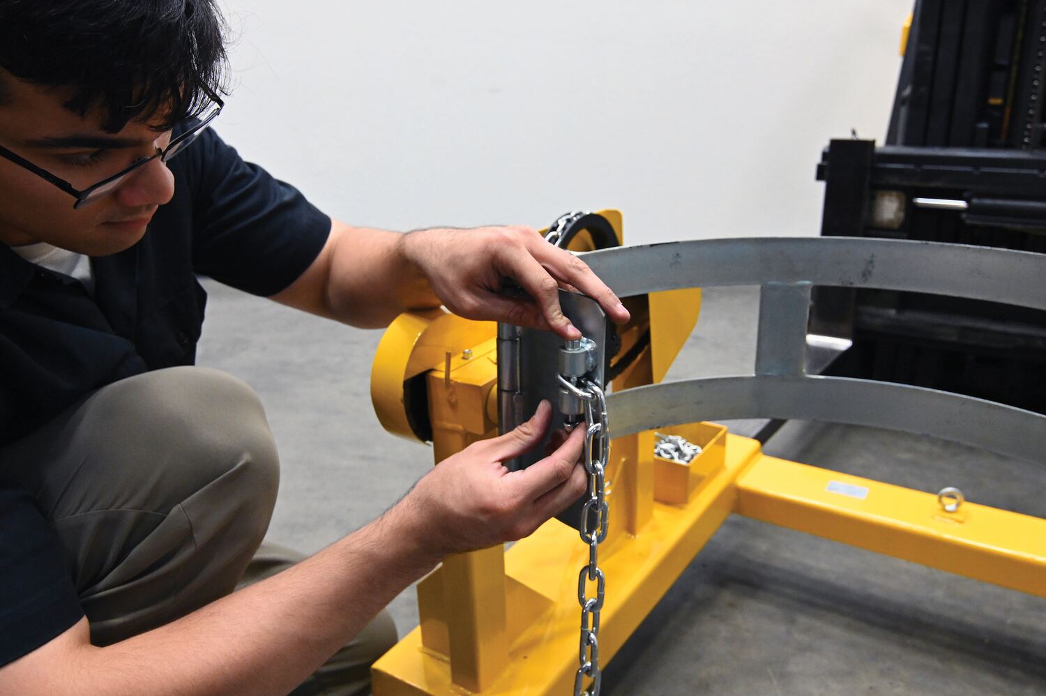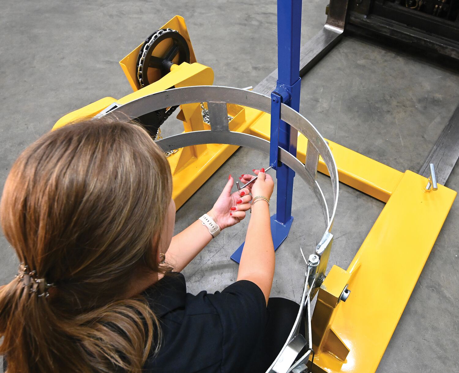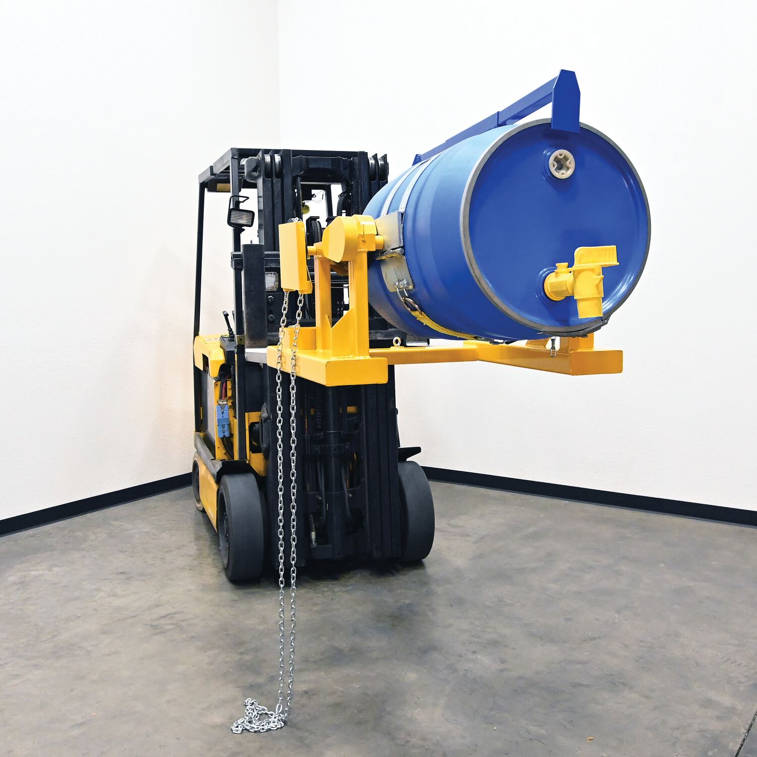 Steel Fiber & Plastic Drum Adapter Carrier/Rotator For 30 Gallon and 55 Gallon Drums BlueThis fiber drum adapter is designed to hold and support fiber and plastic drums. Comes complete with both an adjusting arm and a high strength nylon strap so thirty (30) gallon and fifty-five (55) gallon drums can be used with listed stackers and carrier/rotators.