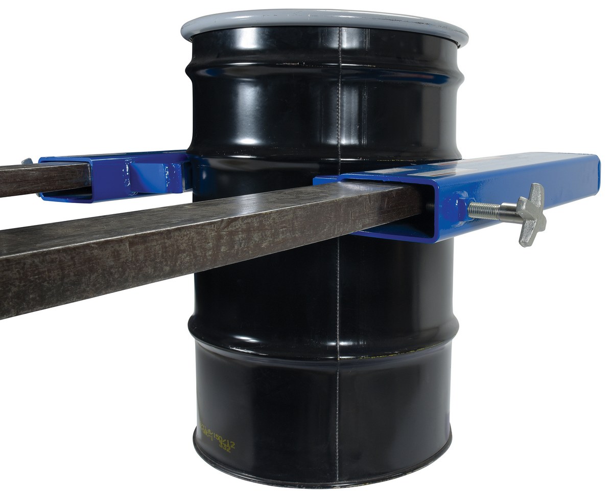 Steel Fork Mounted Drum Gripper 30 Gallon 800 Lb. Capacity BlueThis pair of Fork Mounted drum grippers are designed for use with fork trucks fitted with hydraulic lateral fork positions only. Easily attaches to your forks for easy drum positioning. Available for use with steel drums. Secure to forks with friction-lock screw mechanism.