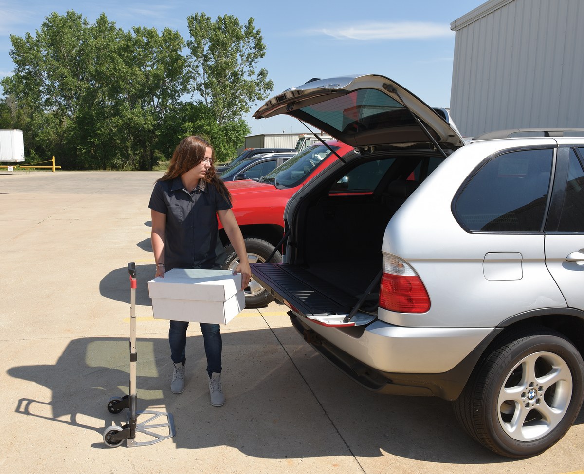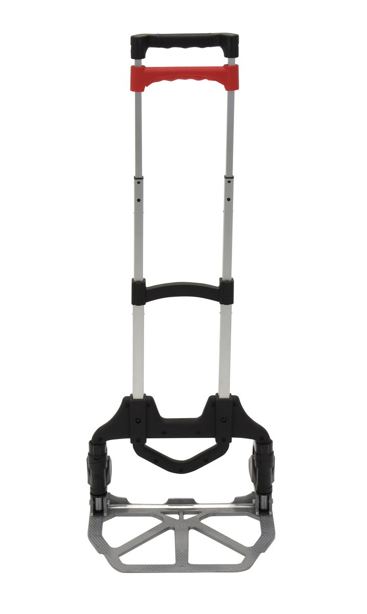 Aluminum Foldaway Hand Truck 150 Lb. Capacity SilverDesigned for everyday, all purpose use. The handle and wheels fold up quickly and easily allowing you to store it in tight spaces such as trunks of cars, under tables, or in closets.