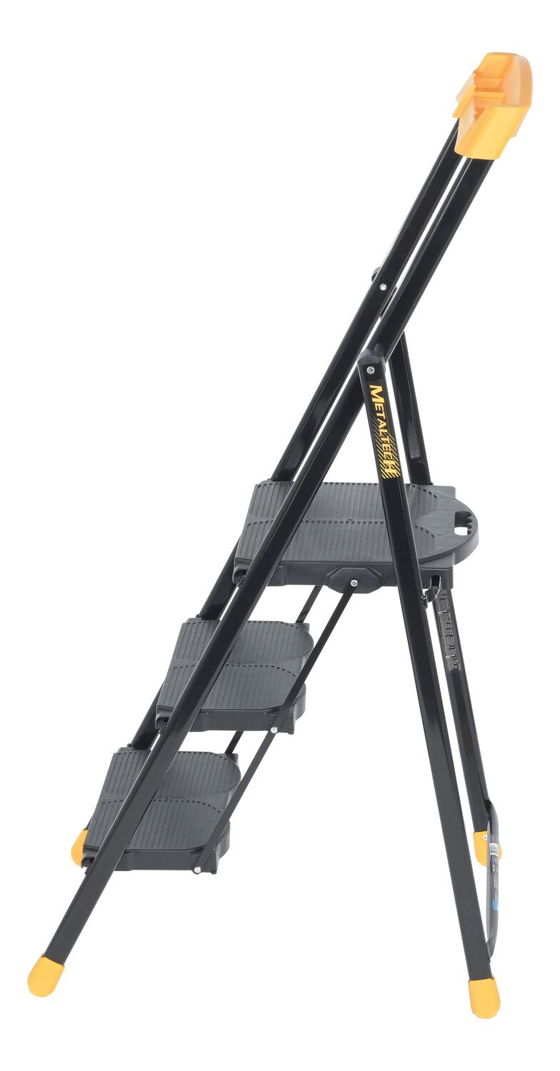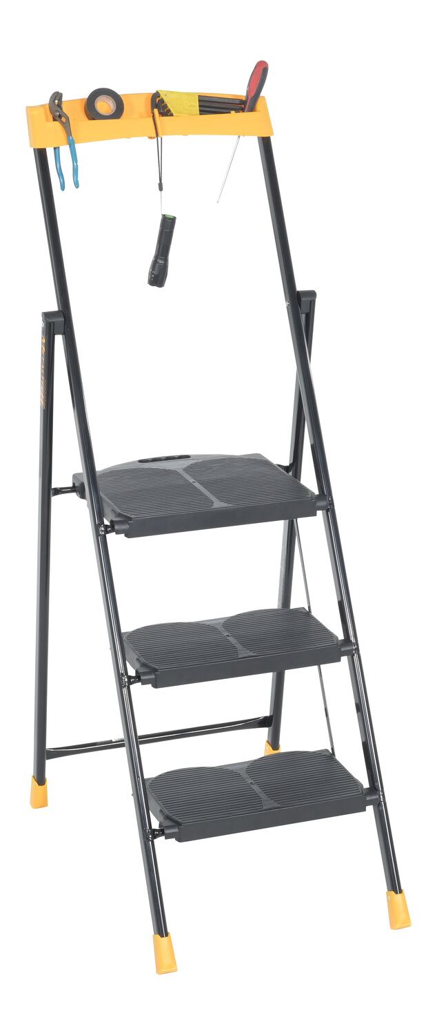 Steel Pro Step Stool 3 Step 250 Lb. Capacity BlackThis durable, multipurpose ladder is perfect for homes, offices, schools, and the industrial warehouse. The compact design can quickly be turned from a standard step stool into a flat profile, making it perfect for storage and on the go. Never to be overlooked, with safety always being the number one priority, the anti-slip platforms help provide a secure climb and descent from the step stool.