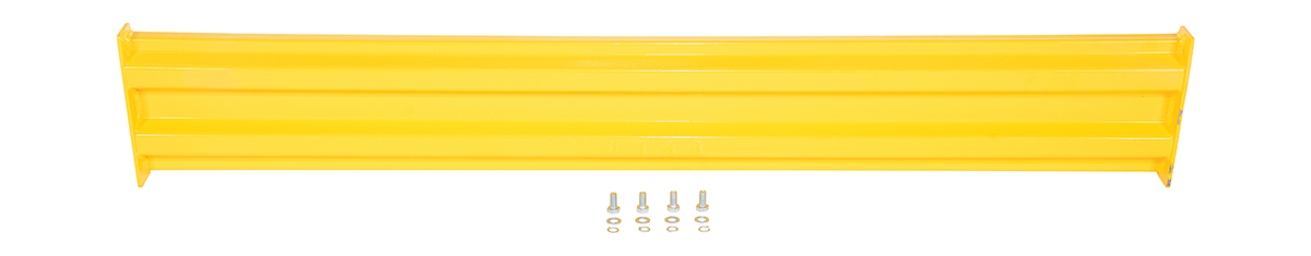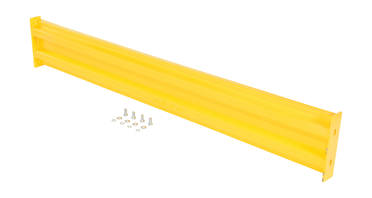 Steel 2 Ribbed Bolt On Style Guard Rail 66 In. Length YellowProtecting equipment, inventory, and most importantly individuals from damage or injury is always a concern. But, with a structurally strong steel guard rail those worries can be eased. This rail is double ribbed for impact resistance both indoors and out. A bolt-on style rail design allows the user to fasten the rails securely in place. Powder coated finish for built in added toughness. Additional posts are available and sold separately. If adding a rail to an existing rail and post section, only a single post is needed.