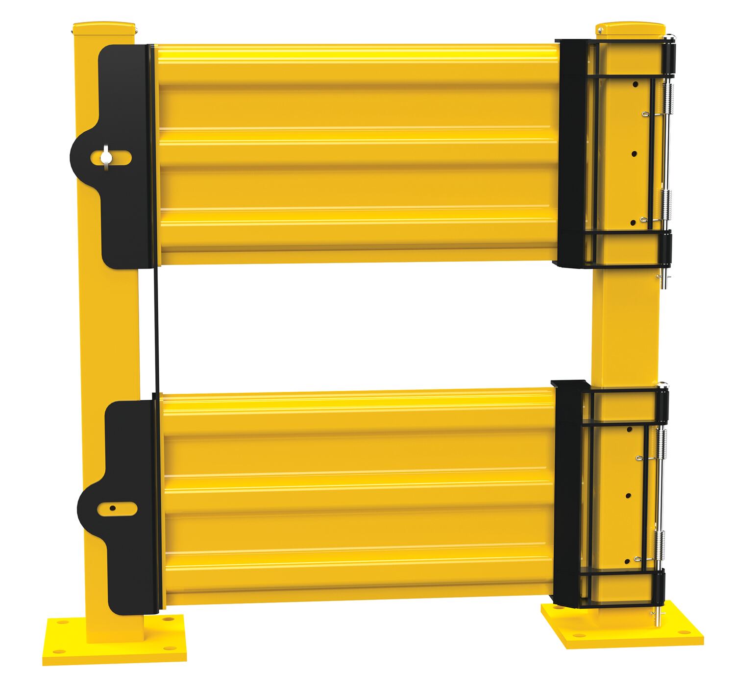 Steel 3 Ribbed Guard Rail Spring Gate 29.875 In Length YellowA guard rail gate is an excellent addition to the guard rail structure. The gate provides the user with access to behind the rail, while still maintaining safety for the surrounding objects. A 3-ribbed steel design adds strength and durability to the gate in case of possible impacts. Gate is safely secured to the rail by connecting brackets. Powder coat finish for baked in added toughness.
