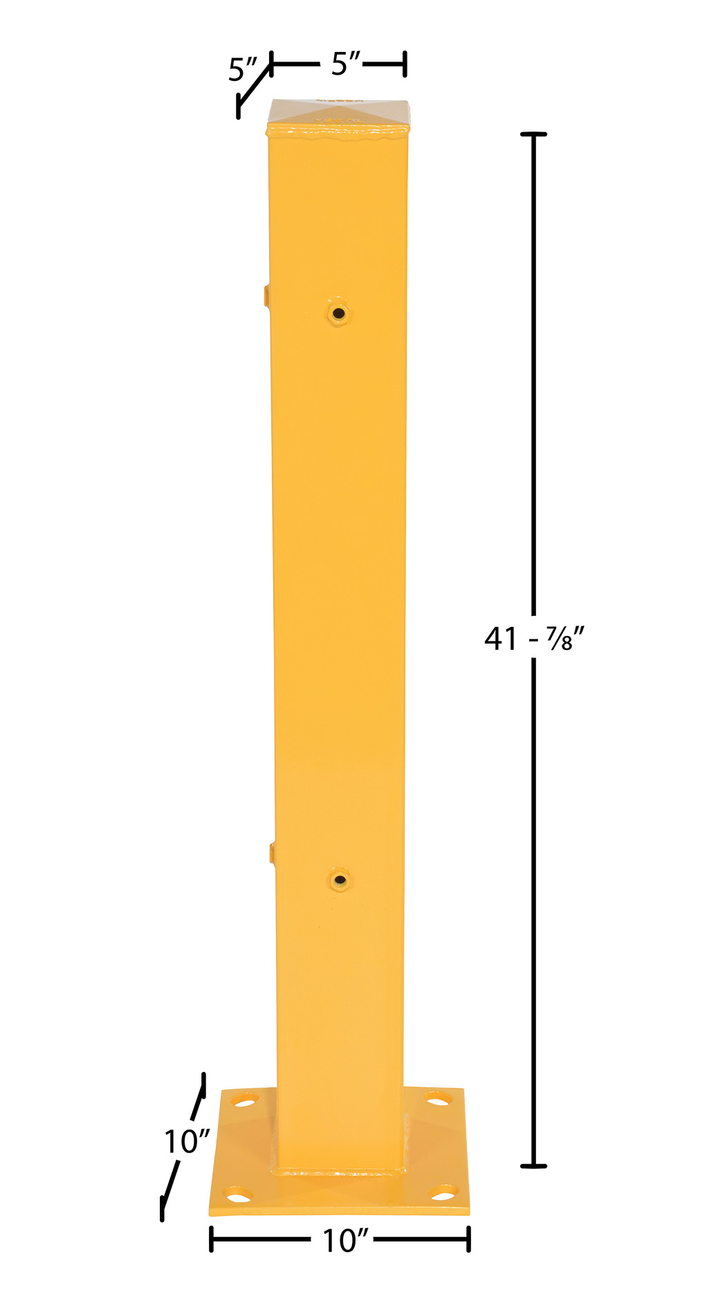 Steel Bolt On Tubular Guard Rail Post 2 Ribbed 42 In. Length YellowThe Tubular post is an addition to the guard rail system. The post is designed with a steel construction for the utmost support strength. The yellow finish allows the post to be both visible and weather resistant. Includes mounting holes on three sides for use as a corner or center post. Posts come with rail mounting hardware. Floor mounting hardware is sold separately.