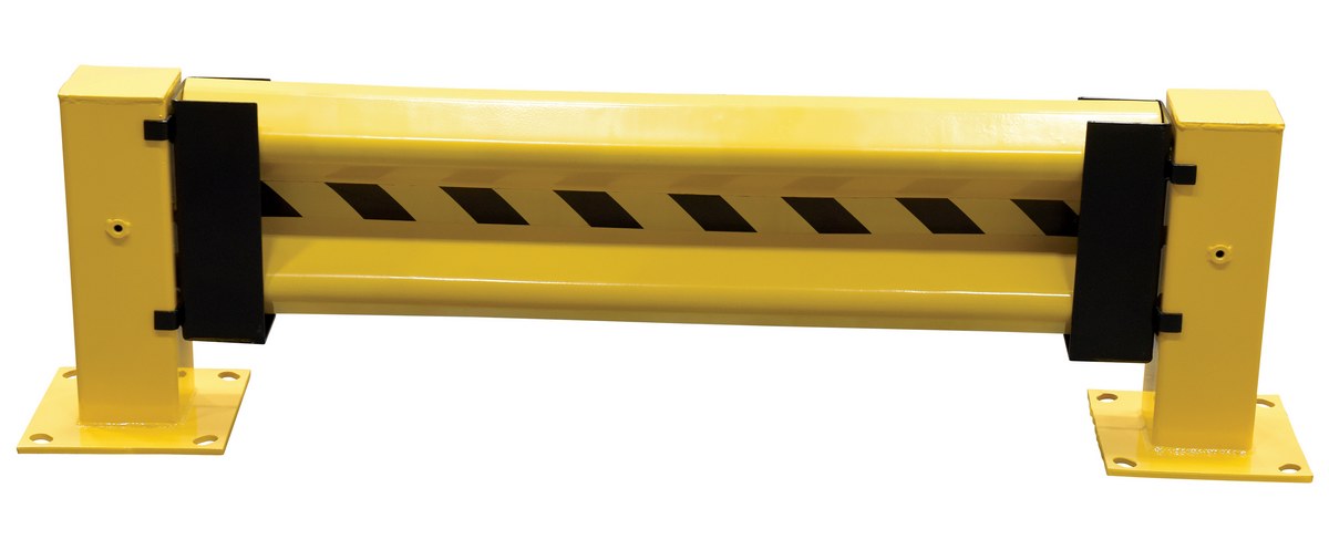 Steel Drop In Guard Rail 2 Ribbed 48 In. Length YellowProtect personnel and equipment both visually and physically with this guard rail system. This economical system can be utilized indoors or outdoors. Ideal for protecting corners of buildings and machinery from fork truck and vehicle damage. Choose between one, two, or three high rail systems. Drop-In style comes with brackets and hardware. Posts are available and sold separately. If adding a rail to an existing rail and post section, only a single post is needed.