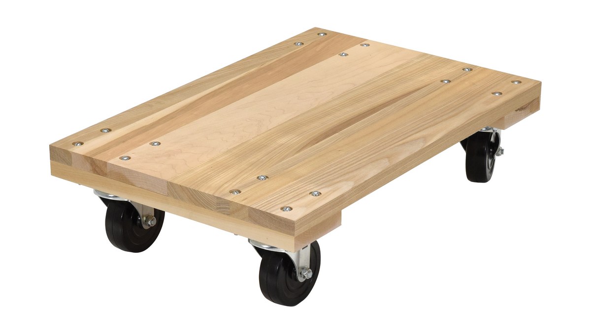 The Hardwood dolly is ideal for the distributing and shipping facilities. The unit is designed to transports boxes, crates, or supplies from workstation to workstation. The dolly can be modified by placing a pull strap for ergonomically friendly use.