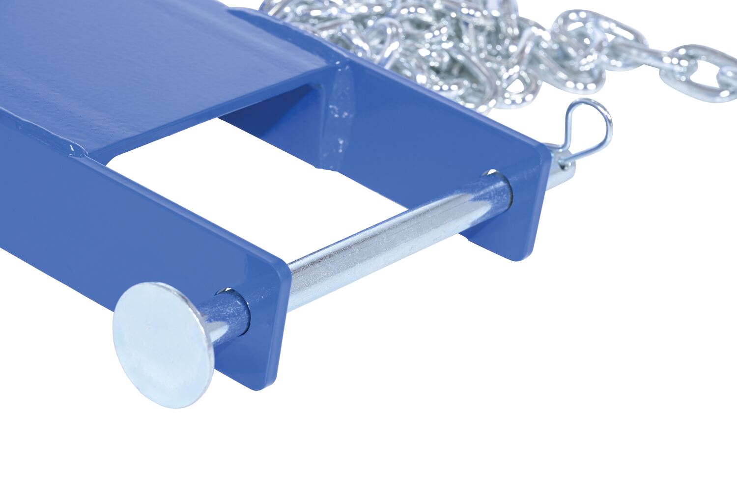 Steel Fork Truck Hook Base 32 In. Length 4,000 Lb. Capacity BlueConvert your fork truck into a tow truck for moving trailers and other portable equipment using this Fork Truck base. Simple design slides onto forks and secures into place with pin style tine locks. Welded steel construction with powder coat blue finish.