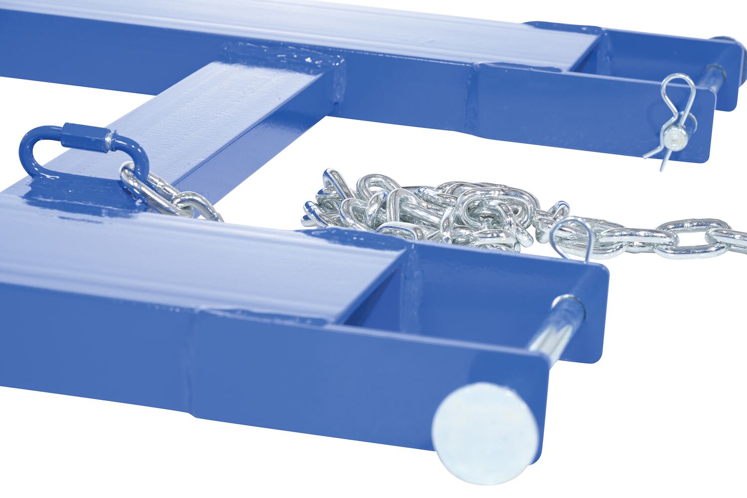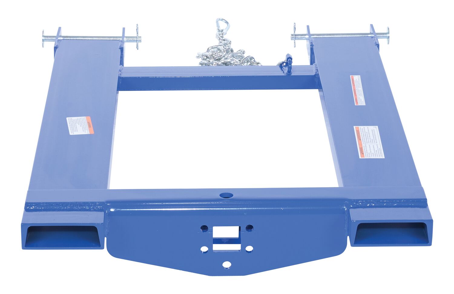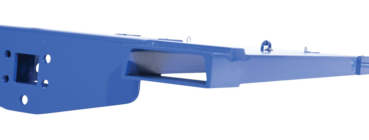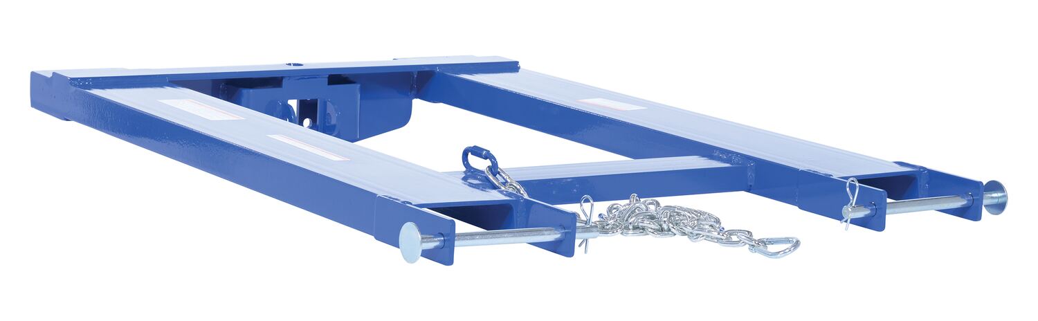 Convert your fork truck into a tow truck for moving trailers and other portable equipment using this Fork Truck base. Simple design slides onto forks and secures into place with pin style tine locks. Welded steel construction with powder coat blue finish.