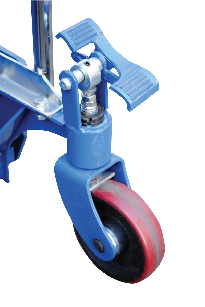 Steel Portable Foot Pump Hefti-Lift 41 In. x 54 In. 880 Lb. Capacity BlueThe Hefti-Lift is a user friendly, portable hydraulic lift. The lift provides reliable, power lifting when moving and positioning loads. It includes a removable platform for operation requiring forks. The non-slip chain is used for accurate positioning while the lift rolls easily on two rigid and two swivel poly-on-steel casters that includes a foot operated brake. The lift is all welded construction with a chrome platform and uprights. Not for use with pallets.