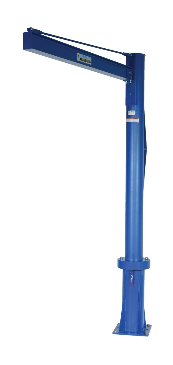 Steel Multi Station Jib Crane 72 In. I-Beam 1000 Lb. Capacity BlueA multi-station transportable Jib crane is designed for use in multiple locations, includes jib crane and one base socket. Extra base sockets may be purchased for use in other locations. Friction brake design allows positive locking and controlled rotation of heavy loads. Standard six (6) inch high I-beam with three (4) inch flange width. Rugged welded steel construction. Requires reinforced concrete pad for installation. Hoist and trolley sold separately.