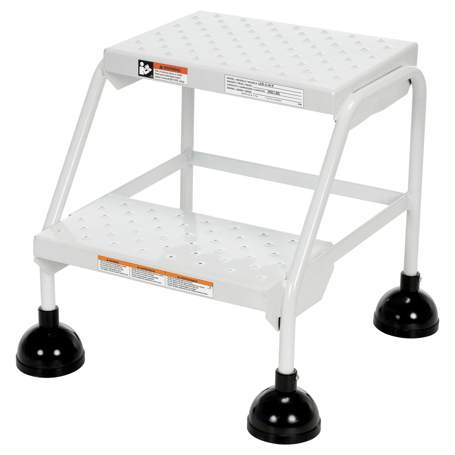 | Step (excluding top step) Depth (in.): 8 | Steps (qty.): 2 | Caster Quantity/Diameter/Width (in.): (4) 1-1/2 x 3/4 |