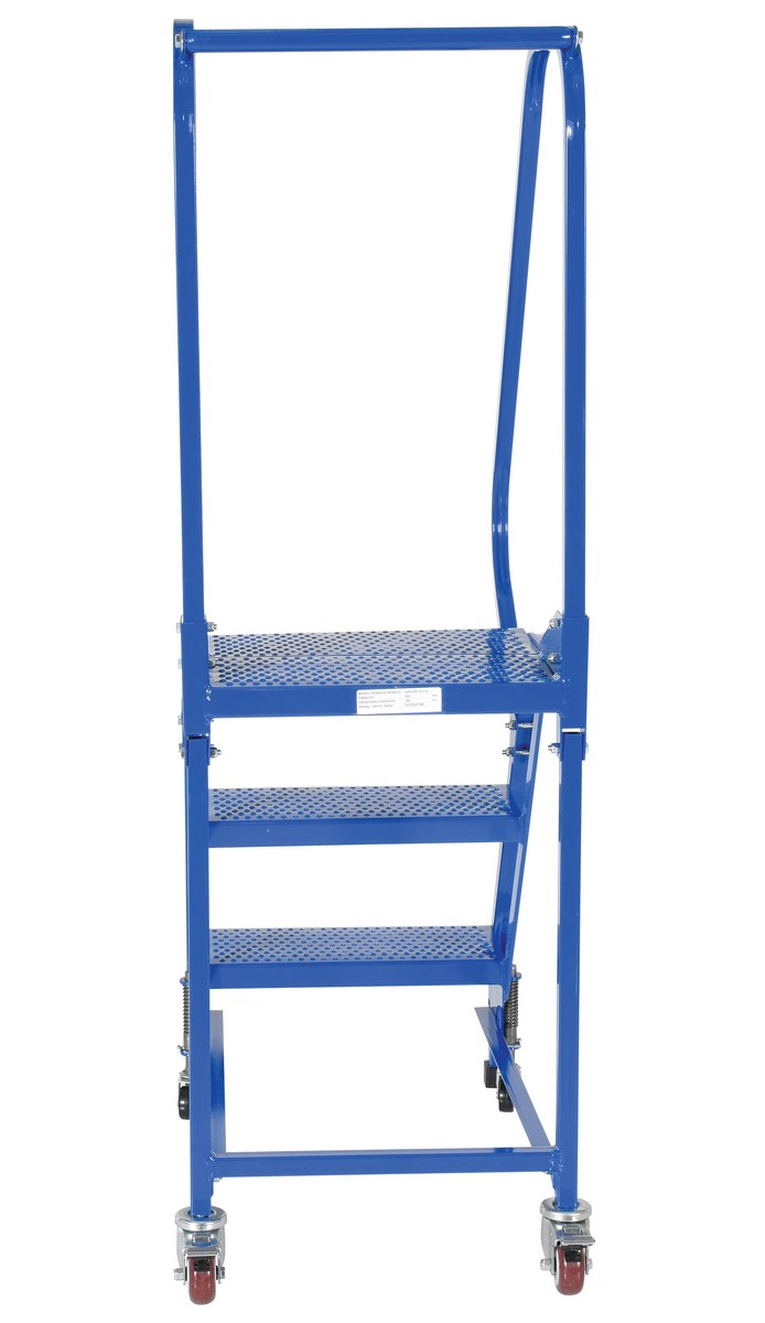 Steel Standard Slope Ladder 58 Degree 3 Perforated 16-13/16 In. Step Width 350 Lb. Capacity BlueThe standard slope ladder is a portable warehouse ladder for every-day use applications. Perforated steps, handrail included and welded square tubular steel construction with powder-coat blue finish. Rubber feet provided for floor protection. Unit has (2) two all directional spring-loaded swivel casters and (2) swivel casters with total locks. Ships fully assembled and ready to use.