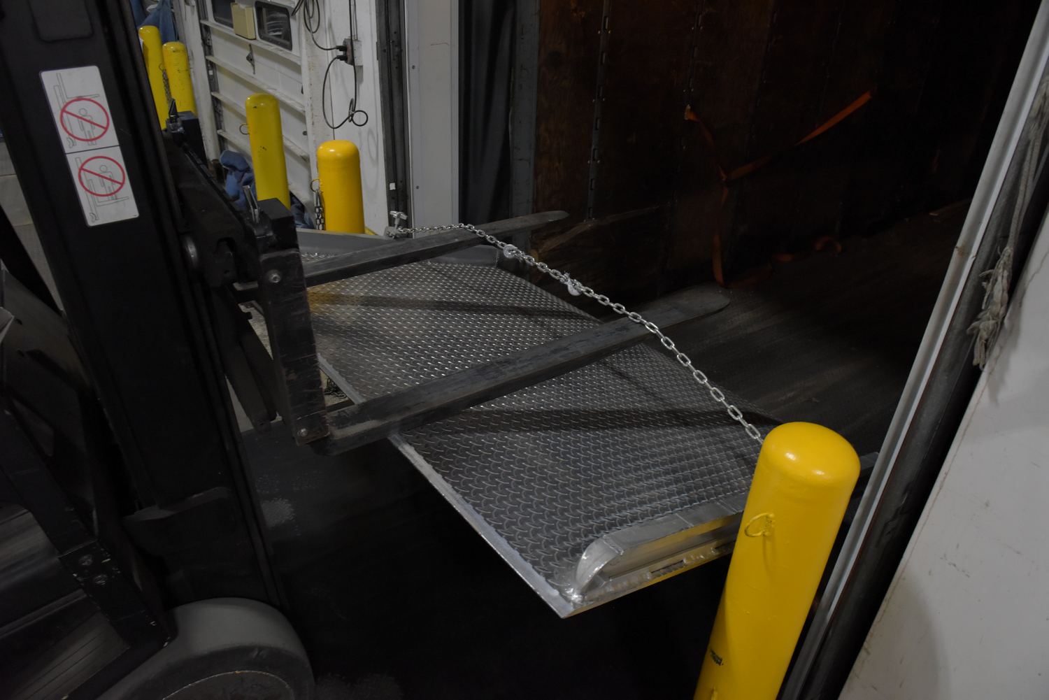Steel Curb Lifting Chains 42 In. Length For Aluminum Dock Boards SilverA lifting chain minimizes the manual labor associated with maneuvering heavy oversized dock boards. The chains provide a central point to be securely grasped by a lifting device, such as a fork lift. A bracket with a knob for quick hand tightening is included and can be attached to the side of a dock board to assist with the chain tightening.