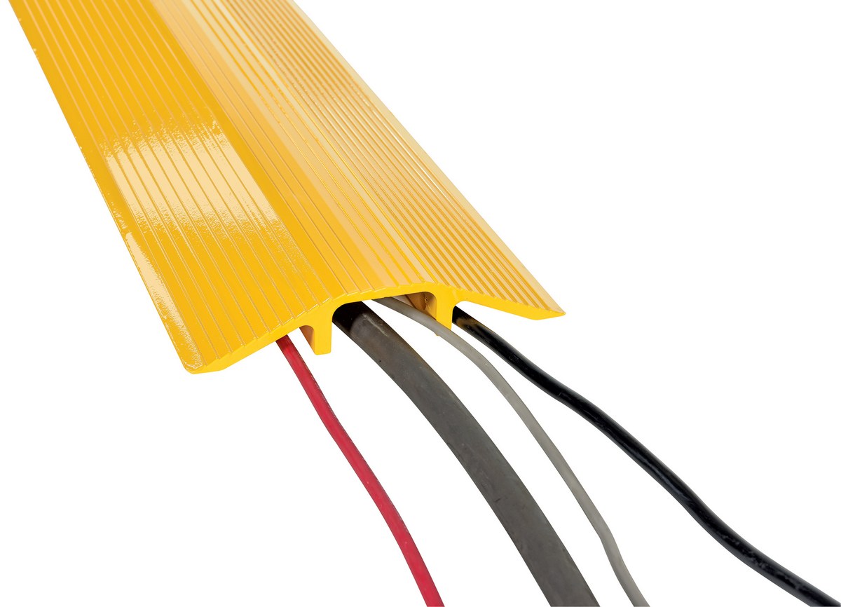 Aluminum Hose and Cable Crossover 36 In. Length 10,000 Lb. Capacity YellowThe Extruded Aluminum hose and cable Crossover is designed to protect air lines, electrical cords and computer cables from damage by fork trucks, carts, and personnel. This ramp has serrated edges for maximum traction and are lightweight for easy portability.