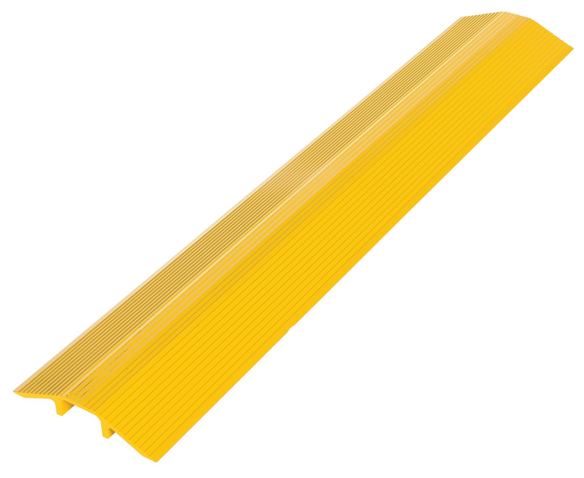 Aluminum Hose and Cable Crossover 48 In. Length 10,000 Lb. Capacity YellowThe Extruded Aluminum hose and cable Crossover is designed to protect air lines, electrical cords and computer cables from damage by fork trucks, carts, and personnel. This ramp has serrated edges for maximum traction and are lightweight for easy portability.