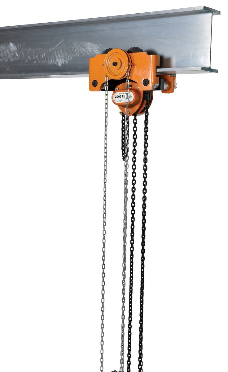 Steel Low Headroom Chain Hoist Gear Trolley 17 In. x 13-1/2 In. x 15 In. 6,000 Lb. Capacity OrangeUse this low headroom Chain Hoist geared trolley to gain additional raised hook height. Chain hoist hook travel is ten (10) feet. Fits on wide flange or S-type I-beam.