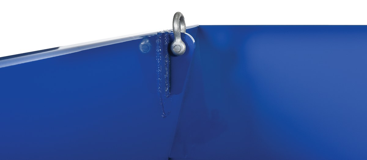 Factory Installed Welded Steel Lifting Lugs 3 In. x 6 In. x 8 In. Quantity 4 For D Style, H Style & R-Style Hoppers BlueLifting lugs (welded) one (1) on each corner for D, H and R style hoppers.