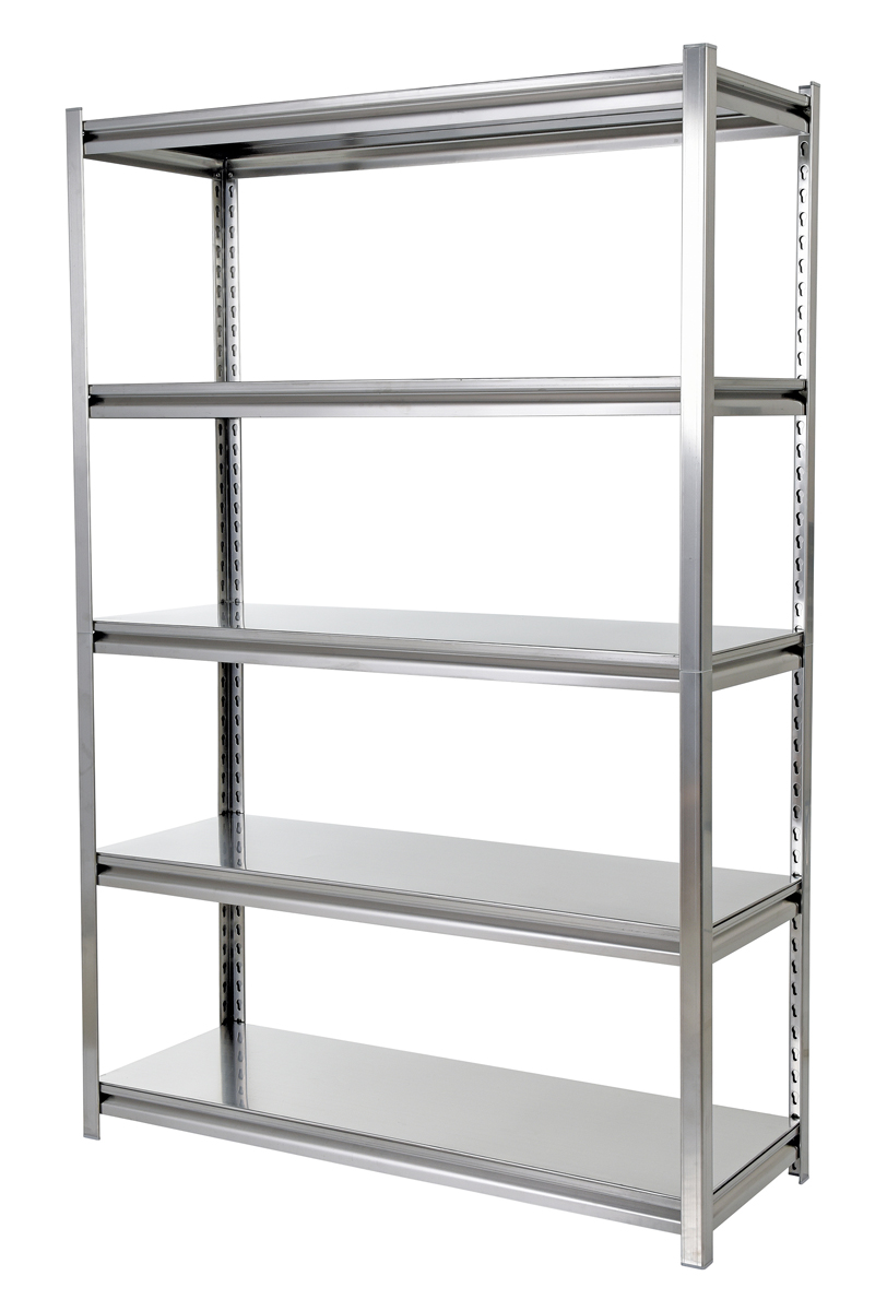 High quality Stainless Steel solid rivet shelving is constructed of stainless steel with brushed finish. Each model includes adjustable shelves. Two (2) piece corner posts design includes plastic connectors. Easy assembly.