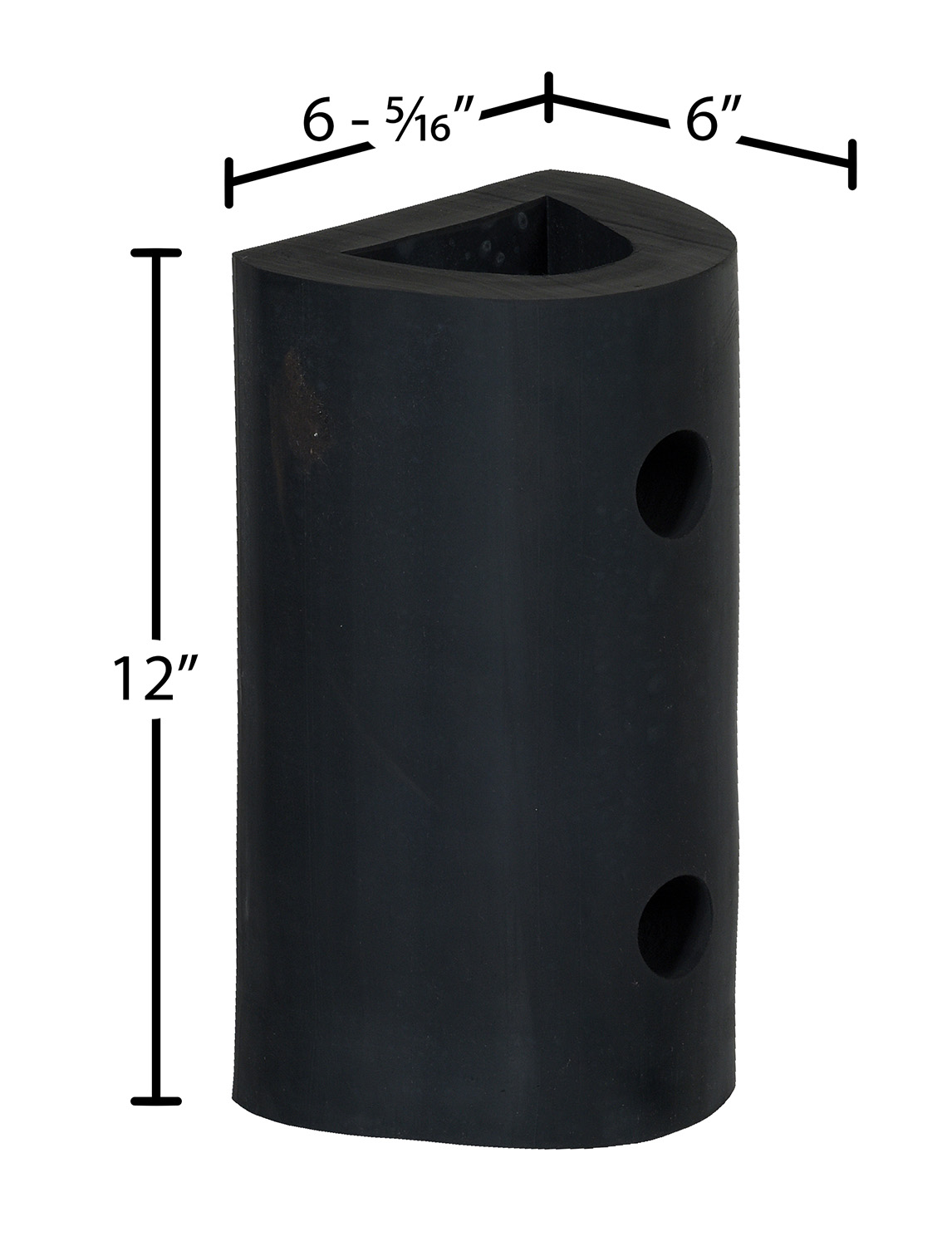 Extruded Rubber Fender Bumper 12 In. x 6 In. x 6 In. BlackThe Extruded bumper protects against heavy impact and damaging results of semi-trailers and trucks. This bumper is made of all weather and abrasion resistant rubber with a half-oval shape that allows for effective fendering action over a wide radius. The unit comes with one washer per hole. The installation hardware is not included, but it is available separately.