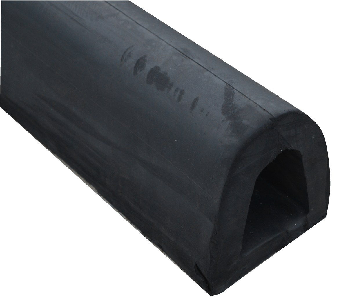 Extruded Rubber Fender Bumper 120 In. x 6 In. x 6 In. BlackThe Extruded bumper protects against heavy impact and damaging results of semi-trailers and trucks. This bumper is made of all weather and abrasion resistant rubber with a half-oval shape that allows for effective fendering action over a wide radius. The unit comes with one washer per hole. The installation hardware is not included, but it is available separately.